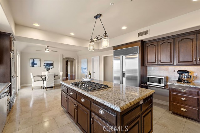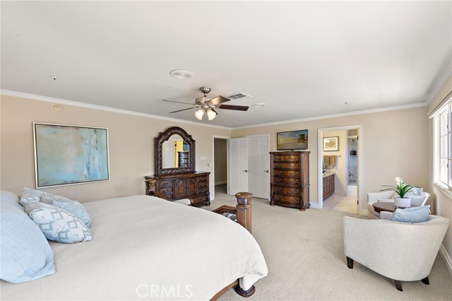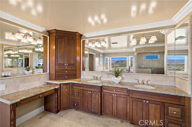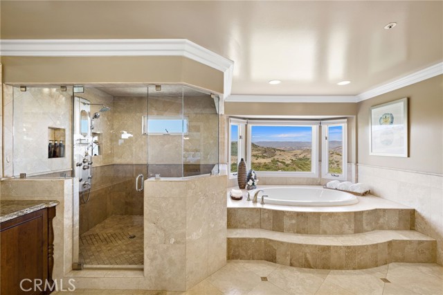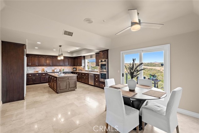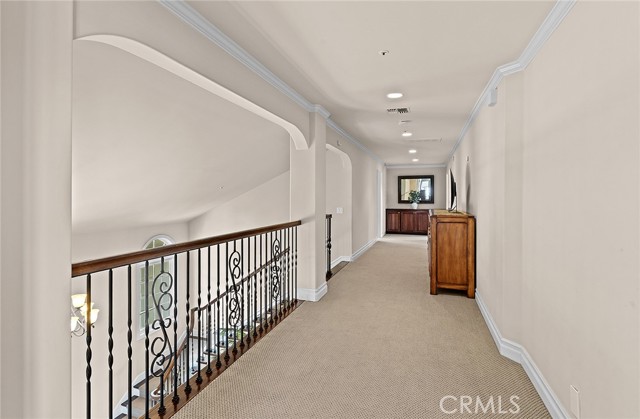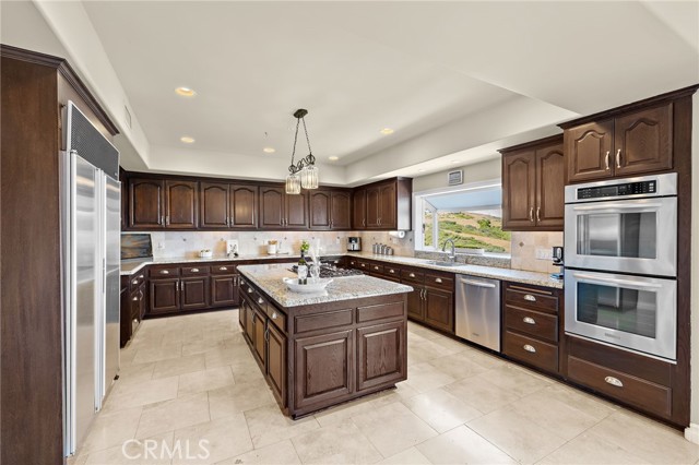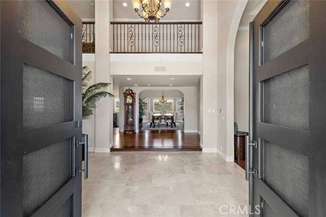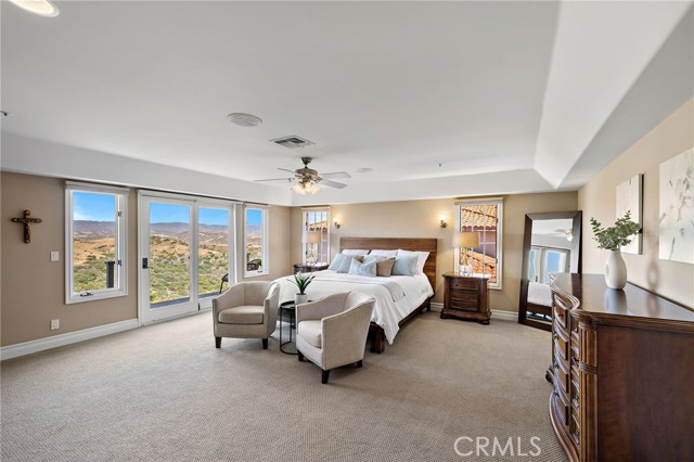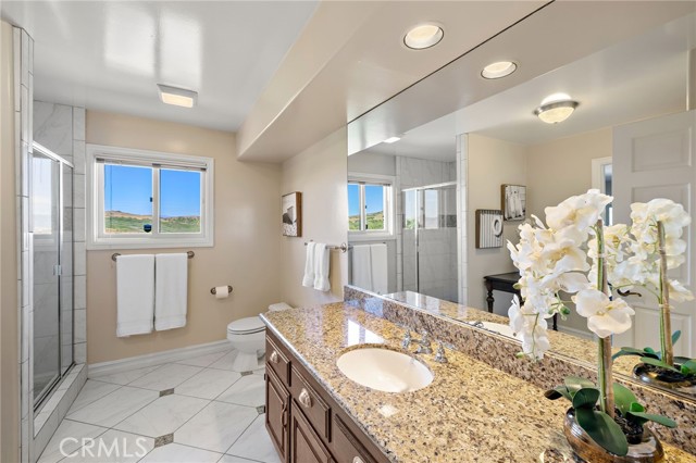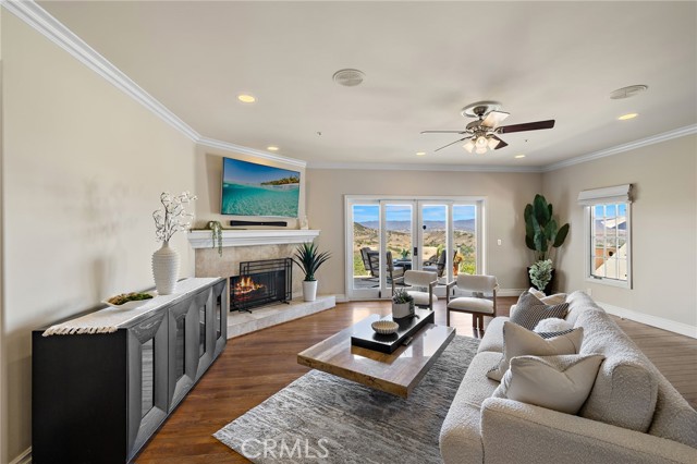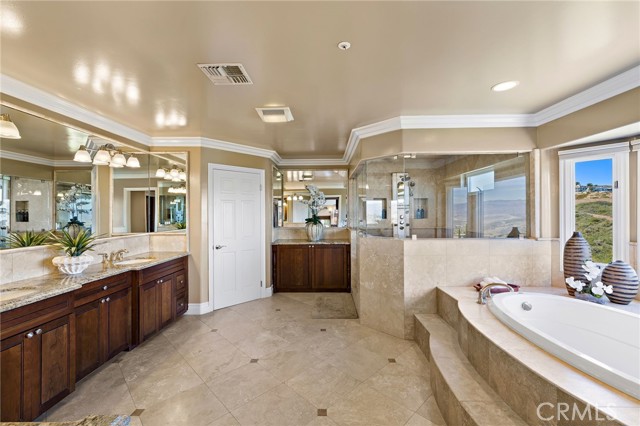 Elevated high in the hills of Southeast San Clemente on one of the area’s most desirable streets, this well-appointed home is a true showcase of pride of ownership. Driving to the summit alone inspires a sense of luxury living. Positioned along a wide (hardly-traveled) street among several large-scale, extremely custom estates, this home and surroundings are sure to impress. Upon arrival, curb appeal has been re-invented with a fresh coat of paint, refreshed landscaping, new entry doors & glass railings-an undeniable stand out. Inside large, steel, double doors, a formal entry draws you into grand two-story spaces. A well-appointed living room invites you in with arched features, coffered ceiling, major natural light, gorgeous wood floors, & detailed fireplace. Views of rolling hills across the formal dining room resemble a plein air painting. Parquet wood flooring details the floor. A spacious family room with wet bar, fireplace, & large view deck create the perfect place to unwind. Just off the family & dining rooms, beautiful wood floors lead to a massive entertainer’s kitchen with room for everyone to congregate. Offering ample cabinetry, stone flooring & counters, large centered island, stainless appliances, walk-in pantry, informal dining, all with surreal views of the etched hills abound (preserved land), this kitchen is just right. Up the grand staircase, wide hallways lead to three primary-like suites. The true primary is huge with major views. Coffered ceilings, fireplace, wired sound, exterior view deck, dual closets, spa-like bathroom with soaking tub, privacy toilet, dual sinks, beautiful wood cabinetry, & variable shower heads all make it exceptional. Two additional (giant) suites complete the upper level, one with view deck off the front (new glass railings). On the lower level (potential guest quarters), a fourth suite, a fifth bedroom (currently an office), & a large bonus room outfitted as home theatre with seating, projector, screen, & AV equipment. Slider doors access the rear patio & slope beyond. Major development potential: large decking, putting green, terraces, citrus grove planters, etc. Other values: zoned HVAC, fire sprinklers, massive 3-car (dialed-in) garage, peek ocean views, no HOA, on over an acre, homes of this caliber are truly rare to come by. Accessible to nearby trail systems including ridgeline & 2.5 mile beach trail, new restaurants, SC Pier, bikable to nearby world-class surfing at trestles, & amazing beaches.