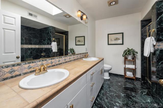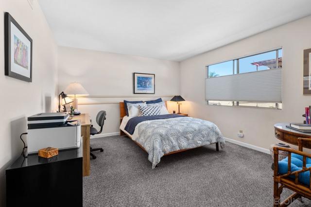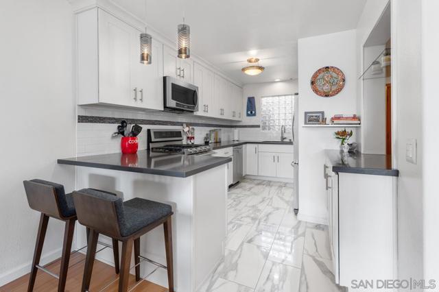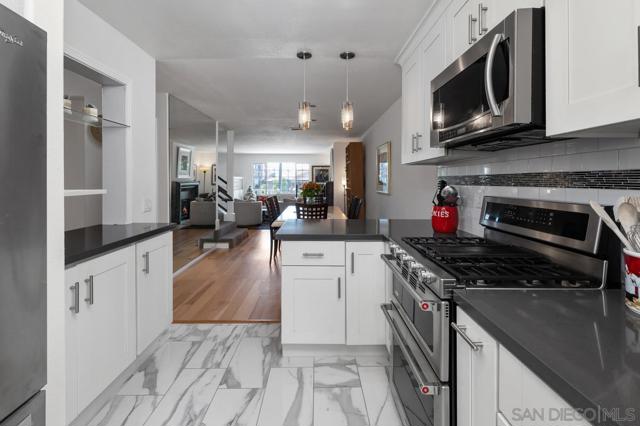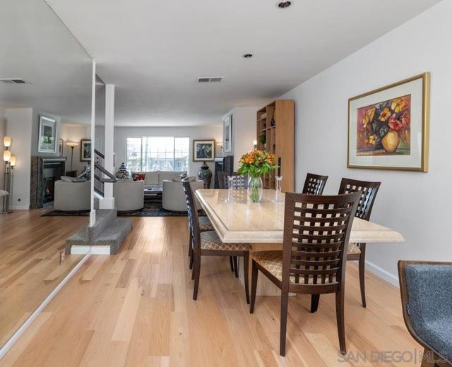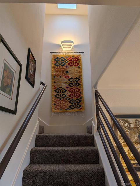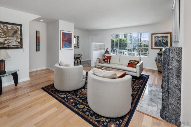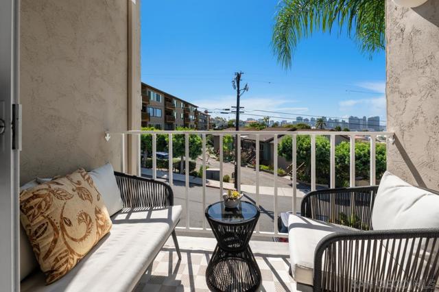 This stunning townhome checks all the boxes! Priced $35,000 below the most recent comp in the complex. Bay & downtown views. Charming South Mission Hills/Mid-Town pocket neighborhood. Great walkability to Little Italy & North Mission Hills. New hickory floors & paint in living areas. 175+ bottle wine room plus 250 bottle Vino Temp wine fridge. Remodeled kitchen with stainless appliances & quartz countertops. Formal dining area perfect for entertaining. Third bedroom/den adjacent to the living area has French doors leading to private deck of Ipe hardwood. Laundry closet with stacked washer/dryer. Dramatic staircase accented by large skylight to the Dual Master Suites creates an abundance of light to both the living areas and the stairwell. The Master Suites are separated by stairwell and afford maximum privacy. Wonderful view deck off the larger Master Suite. New roof 2024, exterior painted 2022. Complex re-piped 2021 with copper plumbing. Attached 2 car garage with direct access to unit and ample built-in storage. HOA fees were increased in March 2025 to build up the reserves. Truly an exceptional property in great location with easy access to beaches, downtown, airport, & freeway.