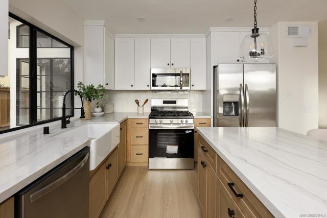Views, Views, Views! Nestled on a gorgeous canyon in highly sought-after West Mira Mesa, this stunning home boasts first- and second-story views. A grand entrance with soaring vaulted ceilings welcomes you inside, where natural light fills the open layout. The European-style kitchen is an entertainer’s paradise with sweeping canyon views. Upstairs, the oversized primary suite is a true retreat with panoramic views, a huge walk-in closet, and an additional second closet! Beyond style and comfort, the home sits in coveted West Mira Mesa school districts and minutes from top retail. With beautifully remodeled interiors and an enviable location, this property truly has it all.