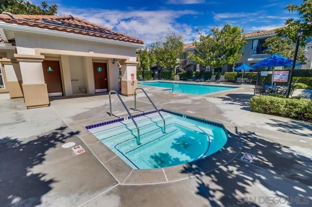 This stylish 2 bedroom, 2 bath condominium is located in the much sought-after Palo Alto community of Sabre Springs. The desirable ground level corner unit offers a premium location with an open concept layout, distressed plank hardwood floors, new carpeting, custom plantation shutters, ceiling fans, a cozy fireplace, and abundant natural light. Enjoy a spacious private patio, covered parking, and plenty of guest parking. The resort style complex features lushly landscaped grounds, a sparkling pool, spa, and fitness center. Ideally situated near top-rated schools, shopping, dining, parks, entertainment and all that San Diego has to offer. This is not to be missed!