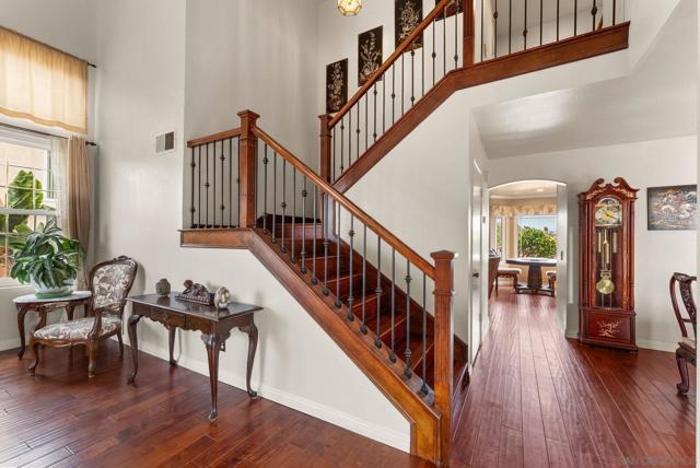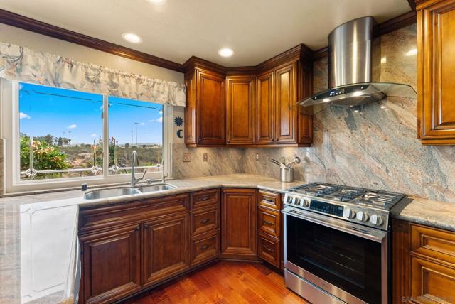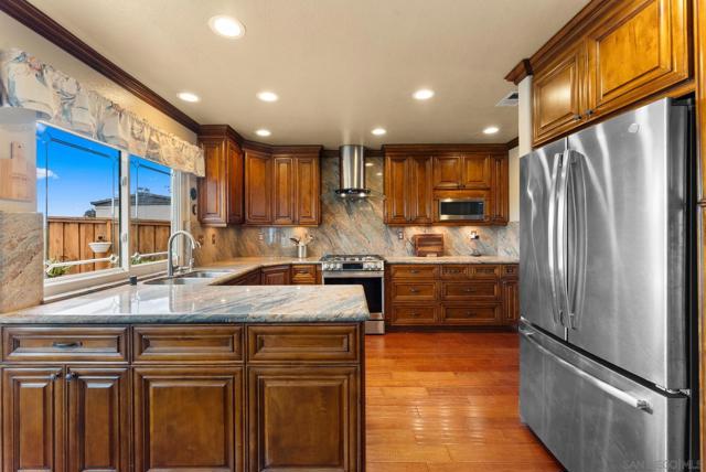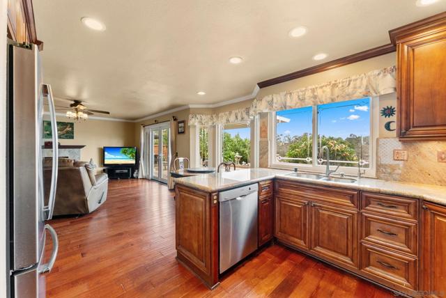 Spectacular Canyon Views! Perched along a scenic canyon rim, this home offers wide-open views and a private backyard oasis with guava, tangerine, Asian pear, and fig trees—plus a plumeria out front. Inside, there’s potential to add a fourth bedroom on the main level and add even more flexibility to the floor plan. The elevated kitchen overlooks the canyon and features custom cabinetry and top-of-the-line appliances, opening to the living room with fireplace and access to the spacious patio. Vaulted ceilings, hardwood floors, and etched windows add warmth and character throughout. The primary suite offers an ensuite bath, and natural views can be enjoyed from multiple rooms. Ideally located near parks, schools, shopping, and major employers—this is canyon living in the heart of San Diego.