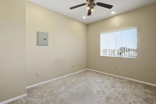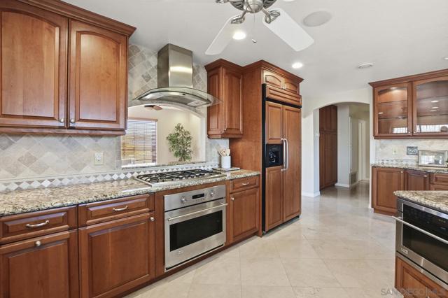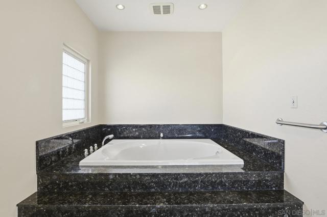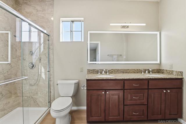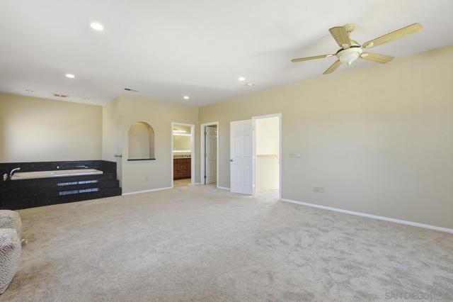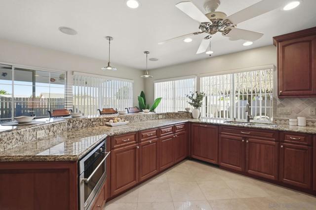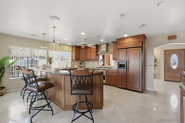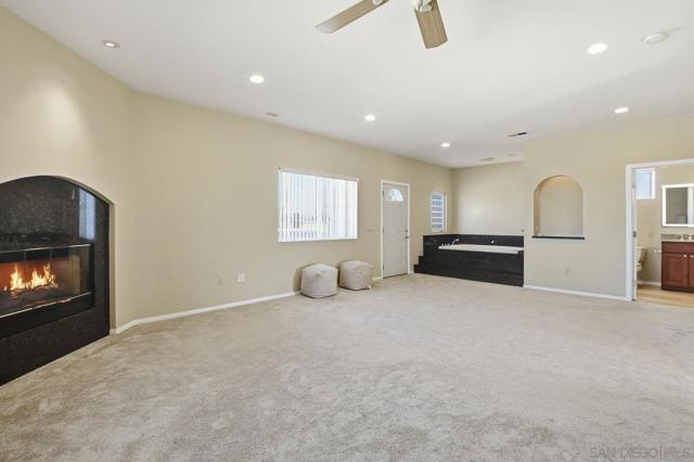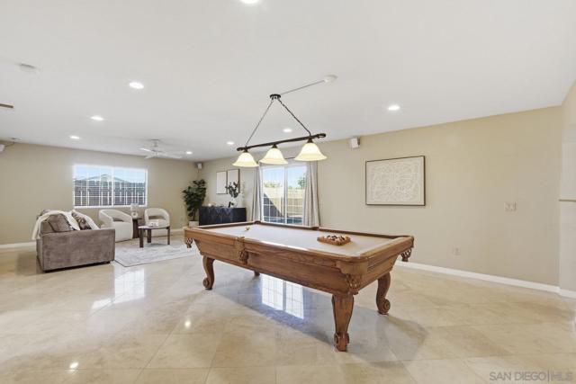 Custom Home w/Pool on Quiet Cul-de-Sac! Welcome to this exceptional home w/great walkability to Mira Mesa Mall, parks & schools. Located in pride of ownership neighborhood, this home has everything - space, comfort, and loads of upgrades in & out! The chef’s kitchen with cherrywood cabinets and granite counters is a showstopper with high-end appliances. There are cabinets galore including large pantry with pull-out drawers. Step outside to your backyard paradise with a sparkling pool, child/pet safety fence (removable), covered patio, palapa with firepit table - perfect for hosting friends & family. Additional features are beautiful polished travertine flooring & recessed lighting throughout. Downstairs you’ll find 3 bedrooms and 2 remodeled bathrooms, plus a spacious family room great for gatherings. Upstairs is your own private 400 sq ft primary retreat, complete with a fireplace, huge walk-in closet, spa tub, separate shower, and even a private balcony. There’s also a fifth room perfect as a home office, workout room or whatever you need. Additional highlights include owned solar panels (the seller actually got a credit at true up date), whole-house water softener, newer oversized water heater, and central A/C to keep you cool year-round. This home truly has it all — space, style, and a great location close to everything Mira Mesa has to offer!