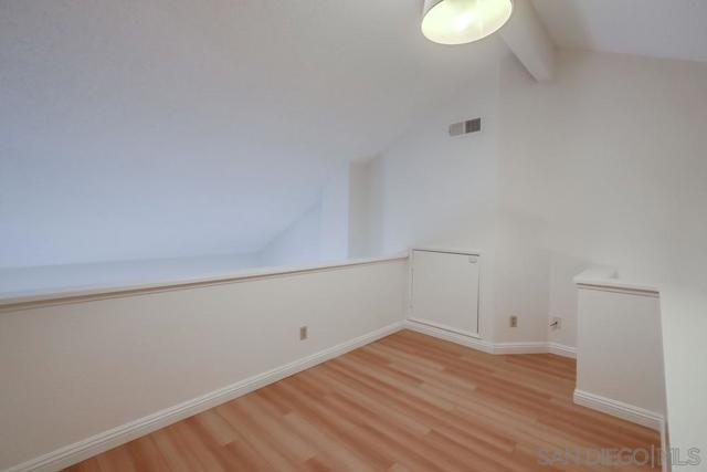 Welcome to the beautifully updated Canyon Bluffs Condo with Loft located on the edge of Sorrento Valley and Mira Mesa. This top-floor 2BR/2BA condo with a spacious loft (optional 3rd bedroom or office) offers unbeatable convenience, just 10 min to Qualcomm and 12 min to UCSD. Freshly painted and featuring new bathroom countertops, vaulted ceilings, and abundant natural light, this home feels open and inviting. The primary suite boasts dual sinks and a large walk-in closet. Highlights include a modern granite kitchen with custom cabinets, a cozy fireplace, an HVAC system, a spacious laundry room, and a private front patio. Two oversized walk-in attic spaces provide incredible storage or potential for expansion. Enjoy assigned parking, ample guest parking, and resort-style amenities including a pool, spa, and recreation room surrounded by lush greenbelts. Close to shopping, dining, and freeways—this home offers the perfect blend of comfort, style, and location.
