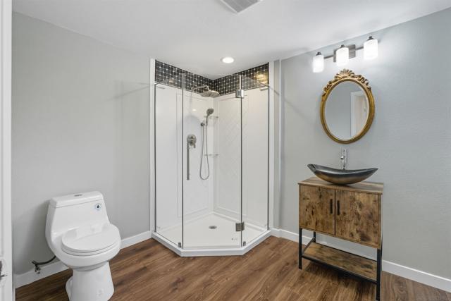 Beautifully remodeled single-story in Rancho Bernardo’s sought-after Rancho Bernardo- "Seven Oaks" community! This 2BR/2BA, approx. A 1,200 sq. ft. home features a bright, open floor plan and underwent a full 2025 renovation. Updates include all new drywall, ceilings, insulation, electrical work, HVAC/ducting, lighting, and painting. The gourmet kitchen boasts new custom cabinetry, "Café" stainless steel appliances, an exhaust fan, and more. Both bathrooms were fully redone with new tile, vanities, sinks, and fixtures. Luxury vinyl wood floors, new dual-pane Jeld-Wen windows, a new accordion door, and tall closets complete the interior. Exterior upgrades include new stucco, trim, paint, garage door, epoxy garage floor, patios, walkways, artificial turf, landscaping, and a coded front door lock entry system. Seven Oaks amenities include: a pool, spa, fitness room, woodshop, and ceramic studio. Turn-key, modern living in one of Rancho Bernardo’s most desirable neighborhoods! This is a residence with a 55+ age restriction.