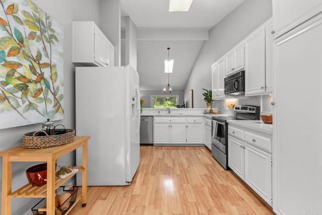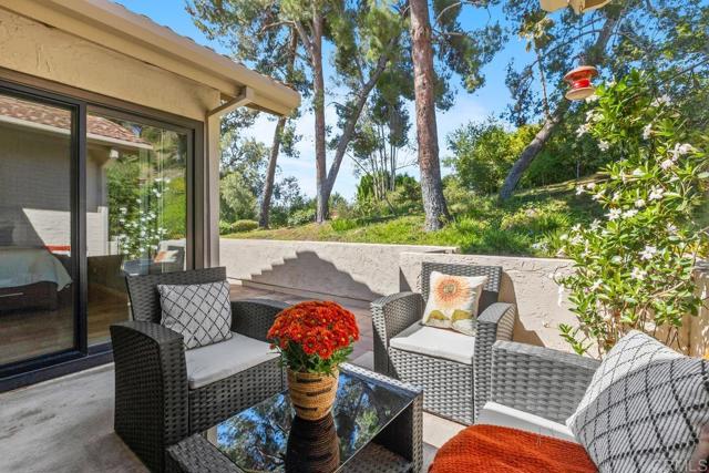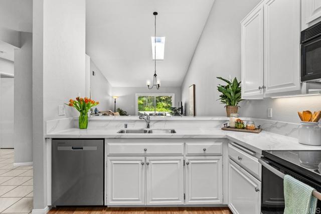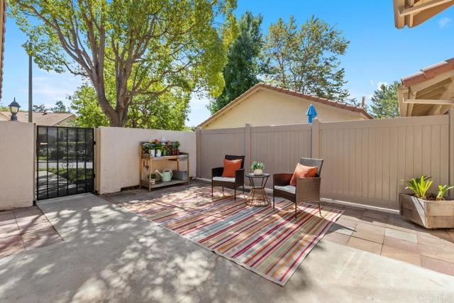This beautifully appointed, single-level home in the active 55+ senior community of Oaks North Villas is located in a prime location along the green belt and has been nicely updated and cared for. You’re instantly greeted by the garden-like setting and the private, spacious courtyard. As you step inside, you’ll notice the freshly painted interior and vaulted ceilings that create a bright and welcoming atmosphere. The open floorplan seamlessly flows from the stylish and spacious kitchen to the inviting living spaces. The kitchen boasts new quartz countertops and backsplash, new kitchen sink, a beautiful copper light, and laundry closet. Illuminated by the skylight with remote control shade, the living and dining spaces overlook the lovely patio and garden. Through the hallway with storage closet, you’ll find two spacious bedrooms, each with a slider, and updated baths. The spacious primary room has two closets and a bathroom with a new vanity and sink. The secondary room has a nice slider that provides direct access to the front courtyard. For added convenience, the home has been updated with newer HVAC & Condenser, water heater, dishwasher, oven/range, disposal, and garage door opener and springs. With direct access to the attached garage, you can enjoy the cleanliness of epoxy floors and the ample storage in the rafters and storage cabinets. Step through one of the two dual-paned sliders from the living room or primary bedroom to enjoy the very tranquil, quiet and lovely rear landscaping. Residents receive access to the many amenities of the Oaks North Community Center including a swimming pool, spa, pickleball, tennis courts, a well-stocked library, art and sewing rooms, a wood shop, a billiards room, and multiple game rooms for card games and other activities. Also, this home is conveniently located near the Bernardo Winery, Oaks North Golf Course and farmer's market. HOA includes home exterior, roof and landscaping maintenance, fencing, gates, and limited homeowners insurance.