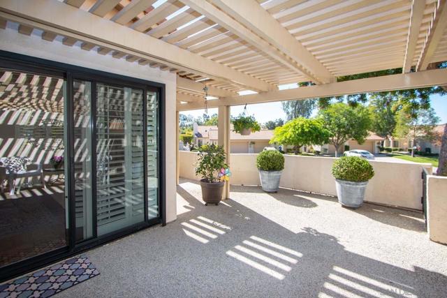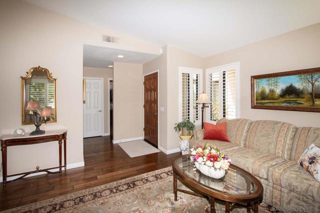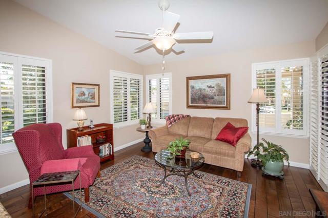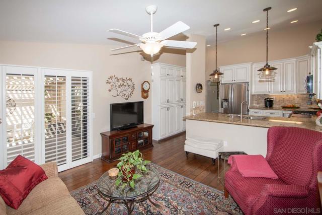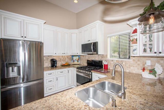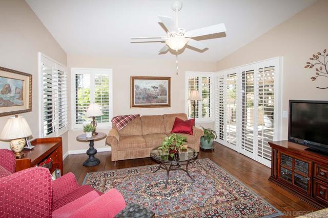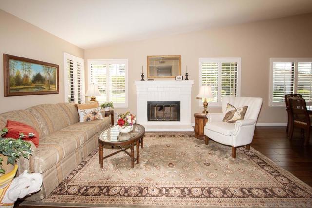 Nestled on a gentle knoll in The Villas section of Oaks North, this 55+ home offers views in all directions. From beneath the shade of the Alumawood covered patio in the rear, enjoy beautiful sunsets. Enter the den (possible office) where Plantation shutters admit the views throughout the home. Hardwood floors gleam in every room, complementing the carpeted primary bedroom and tiled bathrooms. Step into the kitchen where abundant modern cabinets complement granite countertops are accented by stainless steel appliances. Convenient entry to the very spacious/dining room area. A roaring fire in the adjacent living room promises a festive Holiday Season! The second bedroom is bright by day, and cozy for a good night's sleep. Overhead bedroom fans add a gentle breeze in warm weather. Abundant closets line one whole wall. The adjacent guest bathroom offers a shower and bathtub for a luxurious hot soak before you sleep, and granite countertops. A full indoor laundry room is so convenient and provides upper and lower cabinets for all the holiday guest towels and linens! The private EnSuite Primary bedroom offers an abundant walk-in closet with lots of shelving. Plenty of counter space in the bathroom with two sinks, granite countertops, mirrors, and cupboards. Adjacent, another full bathroom with a shower and a tub. Oaks North offers not only a Members' Community Club, but an optional golf course. From your front door, glimpse above the outstanding walking trails that traverse the community. Be sure to view the Oaks North Community website for the many resources.
