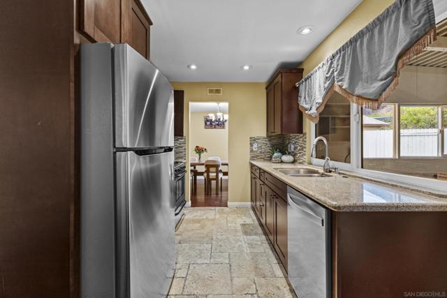 Welcome to this beautiful home in Bay Terrace! Step into the beautifully updated kitchen, complete with shaker-style cabinets, granite countertops with backsplash, stainless steel appliances, a new sink, faucet, and disposal—perfect for those who love to cook and entertain. The spacious living room features a cozy fireplace, creating a warm and inviting atmosphere for family gatherings or relaxing evenings. Upstairs, you’ll find well-appointed bedrooms offering plenty of natural light and comfort, including a generous primary suite with an ensuite bath. Enjoy the outdoors in your spacious backyard, ideal for entertaining, gardening, or simply unwinding in your own private retreat. The property also includes an attached 2-car garage and a leased solar system, providing energy efficiency and cost savings year-round. Located in the heart of Paradise Hills, this home combines the best of suburban tranquility with city convenience—close to top-rated schools, parks, shopping, dining, and easy freeway access.