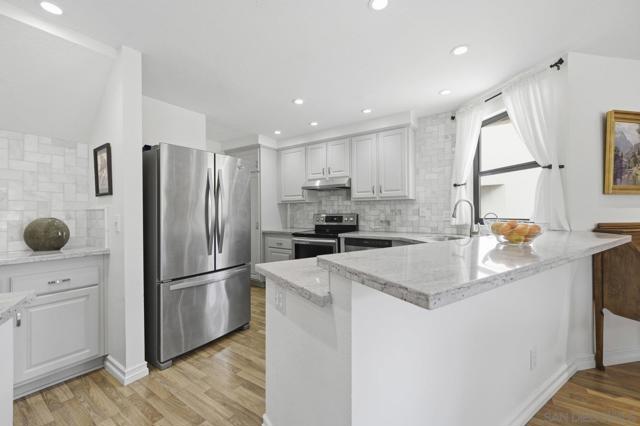 Rarely on the market Canyon Rim’s largest floor plan END UNIT featuring 2 beds 2.5 baths and 3 decks. Highly desirable Canyon Rim community is located just 4 miles to the beach! SOLAR. Entire interior painted 2023. California indoor outdoor living at its best with attached deck off the kitchen and dining area, oversized spacious 2 car garage with full-sized washer/dryer and ample storage space. Dual pane windows and doors throughout. Spacious primary bedroom with newly added AC/heating system, dual sink vanity, walk in shower and attached deck overlooking Canyon Rim’s lush and mature landscape. 2nd en-suite bedroom with attached deck and upgraded bath. Additional seller upgrades include kitchen remodel including granite countertops, tiled backsplash, appliances, refaced kitchen cabinetry, whole house water filtration and reverse osmosis system, blinds and drapes throughout. Laminate flooring and recessed lighting throughout. Only ONE adjacent neighbor and no neighbors above or below. This peaceful and beautifully landscaped community offers 2 pickleball courts, 2 tennis courts, solar heated sparkling pool and spa, clubhouse and BBQ. Easy access to freeways, the beach, nearby shopping and restaurants set back in beautiful Rose Canyon. HOA installed BRAND NEW ROOF 2024. Termite Fumigation to entire community 2024 and painted all exterior. Welcome Home!