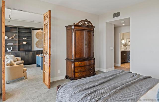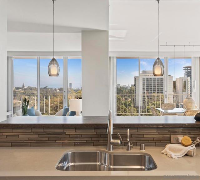 Penthouse 15G at Coral Tree Plaza — 2,376 sq ft, fully reimagined with luxury finishes and panoramic views. Highlights include: sweeping south-facing vistas of Balboa Park, Downtown, San Diego Bay, Point Loma, and Mount Soledad; chef’s kitchen with Wolf & SubZero appliances, custom cabinetry, and an oversized walk-in pantry; spa-inspired primary suite with large walk-in closet, patio access, and adjoining office/den; guest bedroom with dual closets and patio access; whole-home Control4 audio/video plus smart lighting integrated with Alexa; new windows, sliders, upgraded electrical and plumbing; expansive patio with access from every bedroom. Community amenities feature a heated pool, spa, gym, tennis courts, clubhouse, secure parking with guest spaces, and on-site guest suites. Walkable Hillcrest location steps to Whole Foods, dining, and Balboa Park. Residence 15G is a rare opportunity to own one of the most thoughtfully reimagined homes in Coral Tree Plaza. Spanning 2,376 sq ft, this single-level penthouse has been architecturally maximized for light, scale, and livability. Every major system has been modernized—new windows and sliders, upgraded electrical, Control4 audio/video, smart lighting integrated with Alexa, and curated designer finishes. The chef’s kitchen serves as the heart of the home, outfitted with Wolf and SubZero appliances, bespoke cabinetry, a walk-in pantry of rare scale, and expansive prep space ideal for both daily use and entertaining. The primary suite features a spa-inspired bath, large walk-in closet, patio access, and direct connection to a versatile office/den highlighted by a hand-carved Asian wood door. A dedicated guest bedroom also opens to the patio, creating seamless indoor-outdoor living from every room. Walls of glass frame extraordinary south-facing views—from Balboa Park’s California Tower and Prado Bridge to the Downtown skyline, San Diego Bay, Point Loma, and Mount Soledad—capturing the sun’s journey from dawn to dusk. Coral Tree Plaza offers resort-style amenities including a heated pool, spa, tennis courts, gym, clubhouse, secure parking with guest spaces, and on-site guest suites for visitors. The location is unmatched: Whole Foods, cafés, dining, and Balboa Park are just a short walk away, with Downtown, the airport, and beaches minutes from your door. For those seeking the ease of condo living without compromising on space, design, or connection to the city, Residence 15G delivers it all.