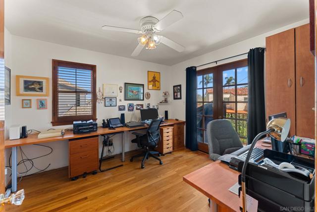 Nestled on a quiet street in the coveted Kensington Heights neighborhood, this timeless 1929 Spanish Revival home captures classic architectural charm while offering the warmth and functionality desired for today’s lifestyle. From the moment you arrive, graceful archways guide you toward a covered front porch, where the original front door and hardware set the tone for the craftsmanship within. Step inside to a grand living room anchored by soaring barreled ceilings, oversized windows, and a statement fireplace that commands attention. The private dining room, bathed in natural light through French doors, offers the perfect setting for intimate dinners or lively gatherings. Just beyond, the spacious kitchen features ample cabinetry and flows seamlessly into a cheerful breakfast nook. Three generously sized bedrooms on the main level provide comfort and flexibility, with an ensuite and multiple access points to the backyard for easy indoor-outdoor living. Upstairs, you’ll discover a retreat-like primary suite, complete with its own fireplace, walk-in closet, cozy seating areas, and a west-facing balcony ideal for sunset views. The en-suite bathroom is a showpiece with its arched shower and soaking tub positioned to capture stunning vistas. An additional upstairs bedroom with its own ensuite offers privacy for family or guests. The backyard is designed for relaxation and entertaining, while practical upgrades—including fully paid-off solar and a newer roof (2016)—provide peace of mind. A timeless Kensington home blending history, charm, and comfort!