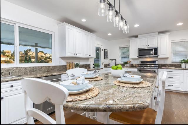 Welcome to 4071 Liggett Drive, a stunning single-level home in the highly sought-after Fleetridge neighborhood. Nestled on a quiet street just steps from Point Loma Park. This beautifully remodeled residence features an open-concept design with a spacious great room perfect for modern living. The kitchen is a true showpiece with granite countertops, a large island, stainless steel appliances, a pantry, and generous counter and storage space. The oversized laundry room offers outdoor access, built-in storage, and a convenient sink. Elegant white French oak flooring flows through most of the home, adding warmth and sophistication, while all three bathrooms have been completely remodeled with stylish finishes. A private office / den is located just off the great room creating an inviting ambiance for both work and relaxation. Step outside to enjoy the wraparound yard with newer drought friendly landscaping and newly installed wood slated fence—an ideal retreat for entertaining or quiet evenings. Point Loma Park has three baseball fields, Concerts in the Park and Tennis courts.