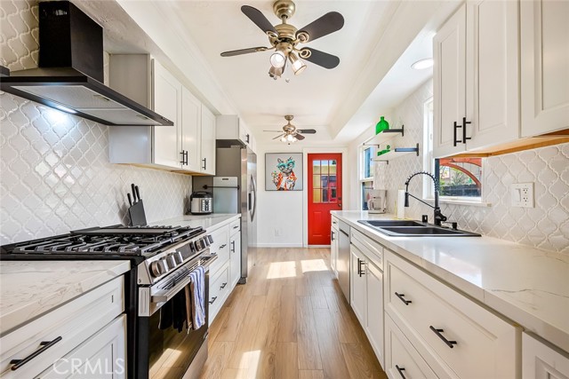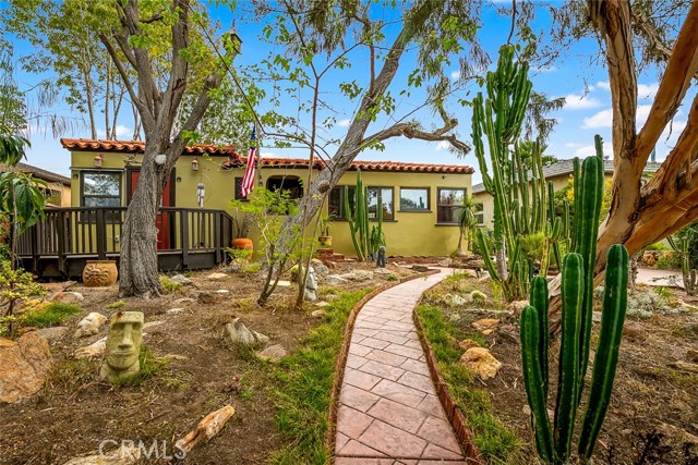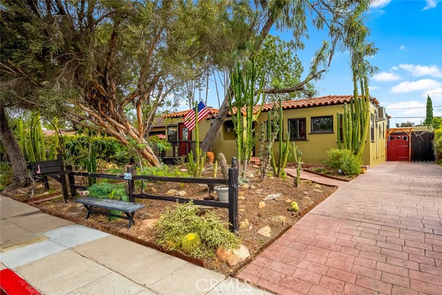 Enchanting El Cerrito Retreat! Beautifully remodeled 2BR/1BA home featuring wood floors, gas fireplace, stained-glass windows, and large custom shower. New kitchen with quartz countertops, new cabinets, gas stove, dishwasher, and stacked washer/dryer hookups. Mini-split heat/AC and seller-owned solar. Enjoy an additional 240 sq.ft. enclosed patio overlooking a spacious 6,400 sq. ft. yard—perfect for ADU development potential under the City of San Diego’s streamlined Accessory Dwelling Unit regulations.The parcel is zoned RS-1-7 (single-dwelling zone) and lies within a Transit Priority Area, allowing for up to four total dwelling units under current City policy. Detached, drywalled one car garage with water and electricity. Walk Score 80, Transit+Bike 55 - minutes from San Diego State University, convenient freeway access, short walk to public transportation, multiple grocery stores and shopping. Four houses from The Living Room Coffeehouse in the Heart of the Charming El Cerrito neighborhood!