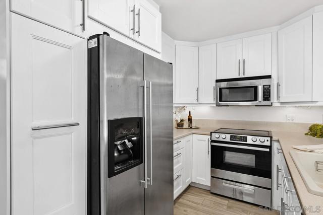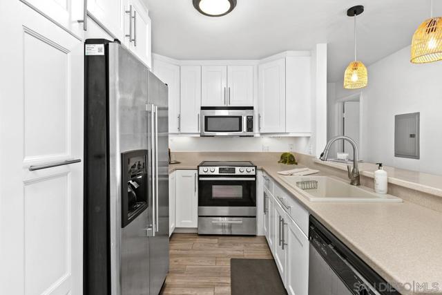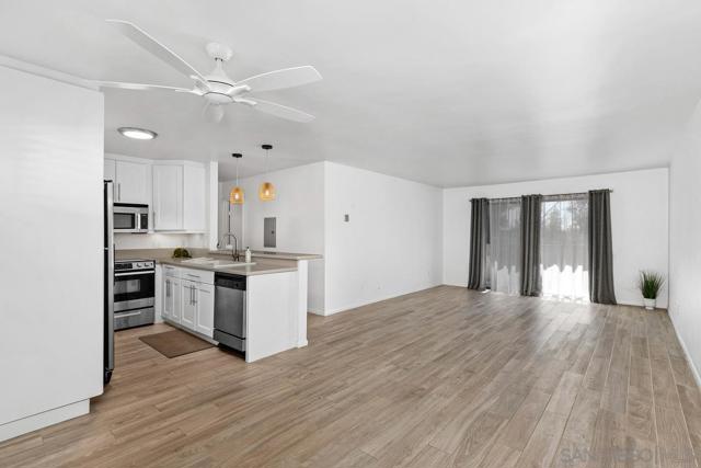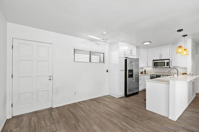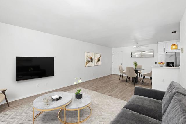 This recently remodeled 2-bedroom, 1-bathroom condo at 4647 Pico St, Unit 205, offers exceptional living space in the peaceful Pacific Woodlands community. The updated kitchen features modern countertops and stainless steel appliances, while hardwood floors and recessed lighting add elegance throughout. The spacious master bedroom opens to a private balcony with scenic views, and the modern bathroom includes updated fixtures and in unit laundry. Community amenities include gated entry, a sparkling pool, assigned parking spaces, guest spaces and is located just minutes from Pacific Beach, Crystal Pier, and Mission Bay. This prime location offers effortless access to trendy cafes, gourmet restaurants, boutique shops, and a variety of outdoor activities. This move-in-ready condo seamlessly combines comfort with the best of coastal living, making it the perfect retreat in Pacific Beach.