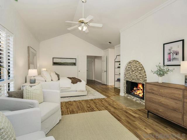 LIVE LARGE in the "Island in the Hills"! The largest model in Villa Dominique, this expansive 2513 sqft PUD is tucked back in one of the most desirable areas of Tierrasanta. Soaring ceilings greet you into the inviting Living Room with windows overlooking the serene natural setting. The generous kitchen opens to a breakfast nook and a family room, before leading you to the two downstairs bedrooms, a full bathroom, and a laundry room, as well as access to the 2-car attached garage. Upstairs, you'll find two primary suites, one with its own private balcony overlooking the surrounding natural beauty of the green space. A large, private patio with several access points within the downstairs completes the package. With only a few shared walls at the downstairs level (and no shared walls upstairs), this home feels like a free standing house! Community amenities include tennis courts and a secured overflow open parking area for add'l vehicles, boats, or RV's.