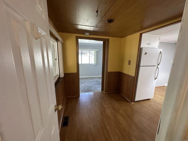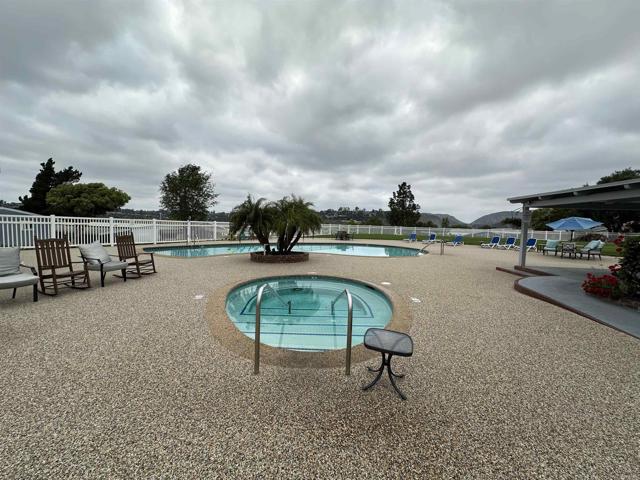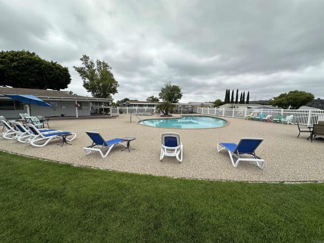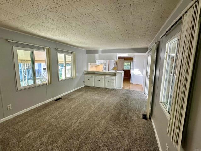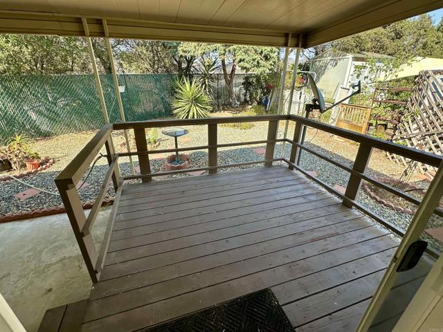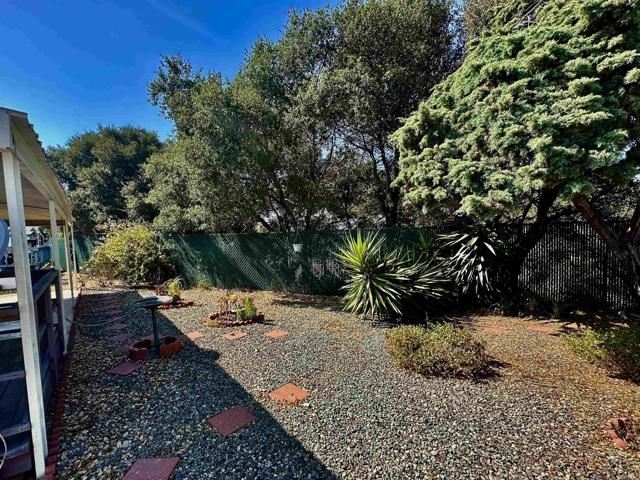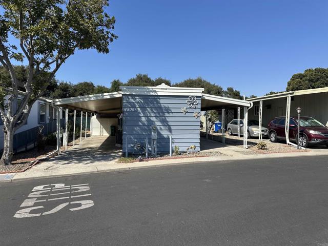 Welcome to this charming and move-in ready home, featuring numerous updates including a beautifully remodeled bathroom and shower. Skylights in both the kitchen and main bathroom fill the space with natural light and moon Light in the evening, while the open-concept layout seamlessly connects the kitchen and living room for easy entertaining. Convenience is key with a newer stackable washer and dryer located in the kitchen, and the main bathroom is equipped with safety rails for added accessibility. The second bedroom has its own entrance from home perfect for a roommate situation or if working from home. Step outside to a large outdoor deck, perfect for enjoying your morning coffee or relaxing with afternoon tea as you take in the lush backyard views. Additional highlights include a covered carport with space for two vehicles and a covered porch on the other side of home can be another outdoor sitting area. Prime location in the scenic, tree-lined Cliffs Mobile Home Park. This vibrant community offers a pool, clubhouse, and a variety of social activities. Ideally situated close to Mission Valley, Admiral baker Golf Course, Snapdragon Stadium, hiking trails, shopping, parks, and just 13 miles from the beach.