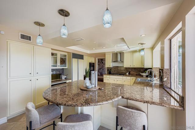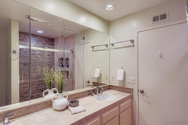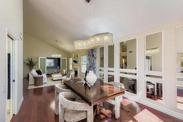 The home you have been waiting for is now on the market. This well maintained 2 story entertainment style home is located in the desirable neighborhood of University City with EZ access to highways 805 and 52. Looking for a home with solar ? This home has solar which is PAID for. Looking for a 220v EV charger ? Yes this home has it . The primary suite features 3 closets, 2 separate sinks/vanities, a shower, a jetted tub, private W/C, a retractable ladder to the attic and a balcony where you can sit and relax. 2 other bedrooms are upstairs. One of the upstairs bedrooms could be split to add an additional bedroom. The upstairs hall bath has an updated shower. Do you work from home ? There is a room downstairs with lots of shelving/storage and a murphy bed. Could be made into another bedroom. The living room and family room each feature a fireplace. A dining area is located off of the living room. Do you like to cook? The spacious kitchen offers a double oven with 2 warming drawers, Thermador 5 burner gas cooktop, trash compactor and built-in refrigerator. Lots of cabinet and counter space. Either enjoy the breakfast bar area or there is room in the family room to create another dining area. The kitchen overlooks the backyard perfecting for entertaining. This lovely home has engineered mahogany wood floors and travertine flooring. The home is located on a 9186 sq ft lot with a large deck behind the wall. Come and make this home your new home. *** See Supplement *** Per Seller : The separate laundry room has a sink. The Electrolux washer dryer set, 2024. The whole house water filter was replaced in 2024. The home has a "scrubber" air purifier. Most of the roof and gutters were renewed in 2021. Attic and duct insulation were added in 2022. Central AC replaced in 2021 plus additional AC split system upstairs were added. The furnace was replaced in 2023 or 2024. Water heater was replaced in 2023 or 2024. Whole house water filter system.