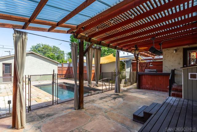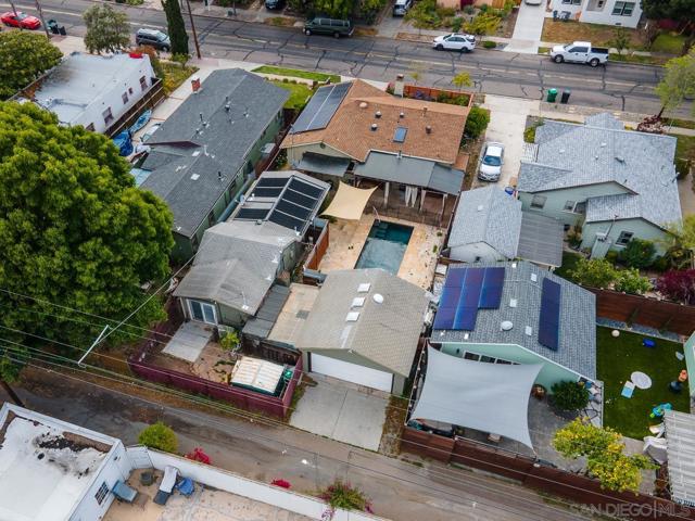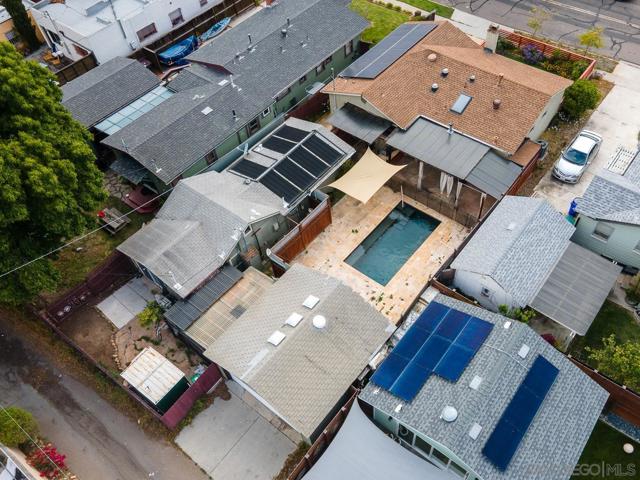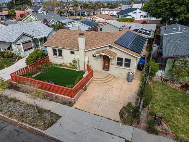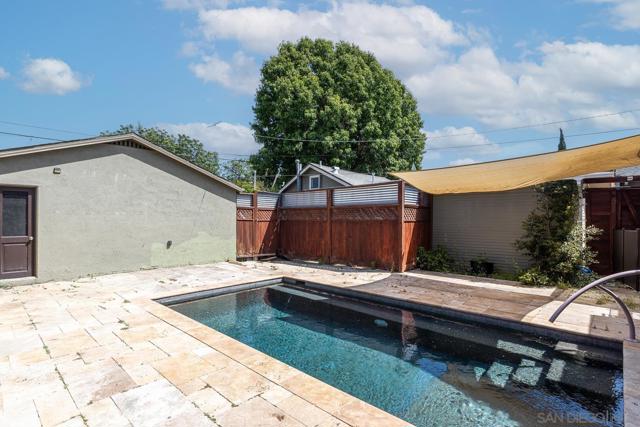 Located in the heart of Normal Heights, this one-of-a-kind, fully detached single-level duplex offers the perfect blend of charm, function, and income potential—ideal for multigenerational living, rental income, or a private guest house setup. Set on a spacious lot, each home has its own entrance, private yard, and zero shared walls. The main home is rich in character with Brazilian Koa wood floors, Andersen dual-pane windows, coved ceilings, solid wood accents, a cozy fireplace, and owned solar. Step outside to your private backyard oasis with a solar-heated saltwater pool, built-in BBQ, and covered patio with an overhead heater—perfect for entertaining year-round. The second home has been beautifully remodeled and features 2 bedrooms, 1 full bathroom, a full kitchen, and its own fenced yard—all on one level with exceptional privacy and flexibility. Additional highlights include a two-car garage, driveway parking, and a prime location just a bike ride from Adams Avenue’s dining, shops, and nightlife. With easy freeway access and only 10 minutes to the beach, this is a rare opportunity to own a high-performing property in one of San Diego’s most vibrant neighborhoods—don’t miss it!