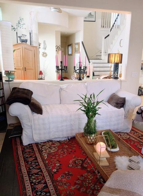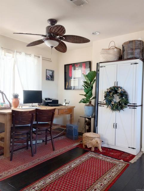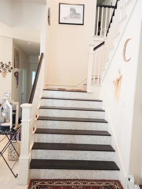 Beautiful Bordeaux home within the Pacific Highlands Ranch neighborhood in Carmel Valley in quiet location. Architecturally striking and well laid out floorplan with tower entry, spacious dining room, separate family and living room, downstairs bedroom, wide staircase and loft/office overlooking lower level. Custom designs include staircase with hand scraped espresso engineered wood floor and seashell mosaic riser, travertine tile on lower level as well as beautiful stained-glass window in living room. This home features 4 BDR, 3 BA plus loft/office and a 3-car tandem garage/workshop. The Bordeaux community has the lowest HOA dues in all of PHR. The exterior of the home was painted in June of 2025. Special features include selected builder options at time of construction such as low VOC paint, flooring and countertop upgrades, exterior lighting package and more. Nice size landscaped lot with multiple seating areas including side yard with gate. Multi-purpose outdoor spaces, pre-plumbed with 50-amp outlet for spa. Mature plants such as palms, water wise plants and fruit trees. Access to the West Highlands Pacific recreation center with wonderful amenities such as pool, spa, clubhouse, gym, outdoor seating and barbeque areas. Convenient shopping nearby and close to top-rated schools.