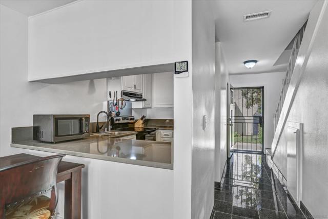 New Price Range starts 11/01. Stylish 2 story condo, 2 bdrms, 1.5 bths end-unit, located in the very awesome Clairemont neighborhood off Balboa & Genesee Avenues. Features: in-unit laundry room w/ full size W/D, water heater, cabinets & shelves for ample storage. Kitchen includes dishwasher, range/oven, refrigerator, new faucet, peeks into the dining/family room, eat-at bar, brand-new LVP floors. 1st level has a half-bath, additional storage area & glass slider-leads to a sunny private patio. The 2nd floor features two relaxing & quite bedrooms, full bath & 3 storage closets in the central hallway. The primary offers direct access to bath plus a huge three-door closet. The second bedroom has a built-in desk with shelves plus a two-door closet. Bath has tub/shower-freshly painted. The newer HVAC system was recently relocated into the attic, freeing up a large hallway closet. Balboa Towers Condominiums offers a pool & clubhouse, is conveniently located near excellent schools, multiple shopping centers & restaurants, community college, canyon trails, golf, BMX track, bus stops, and so much more! Just a short drive to Mission Bay and the incredible San Diego beaches. Notes: for street view refer to drone pictures, the HOA has just approved extensive plans for repairs on roofs, balconies, wood, stucco, painting, pool area, steps, landscaping and pavement. (For more information, please contact agent). 1 carport space included. Room dimensions are approximate. Come visit to see more!