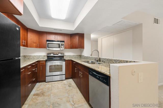 Don't Miss this beautiful, spotless and spacious move in ready condo featuring brand new carpeting and paint throughout, beautifully updated granite kitchen, updated baths, full size side by side washer & dryer laundry, split bedroom floorpan, large open living area with separate entry foyer, ample storage plus a large private 22' x 6' balcony all well located in a quiet complex tucked away off El Cajon Blvd including a community pool, spa and ample guest parking! Perfect for students or employees of SDSU!