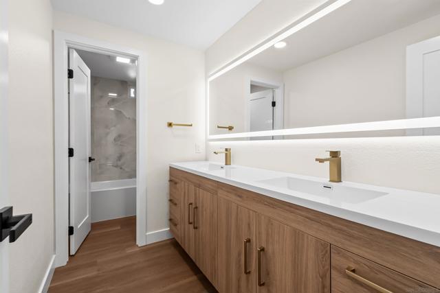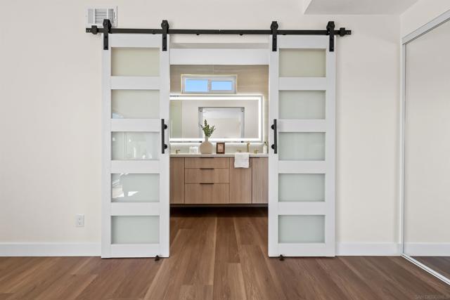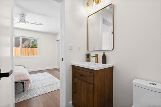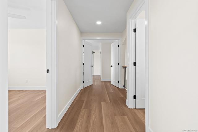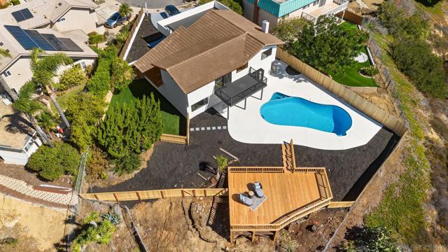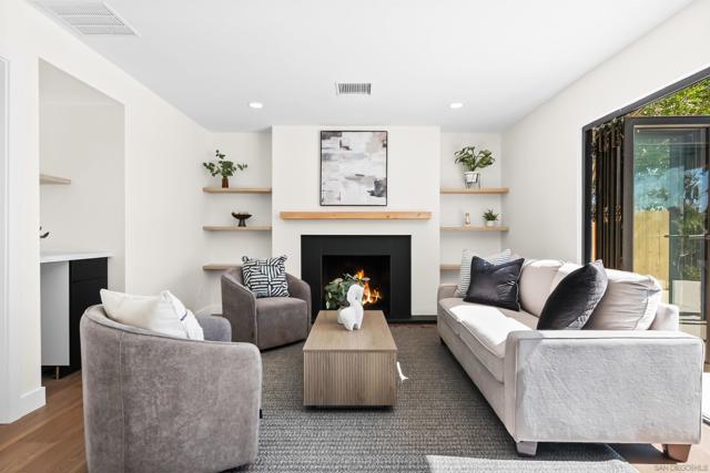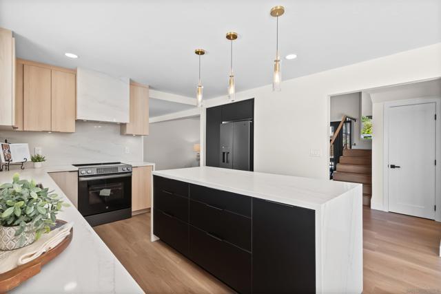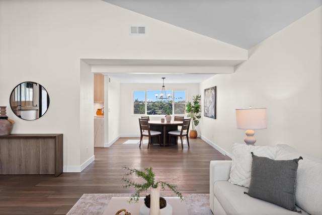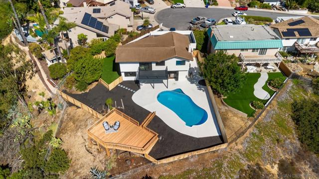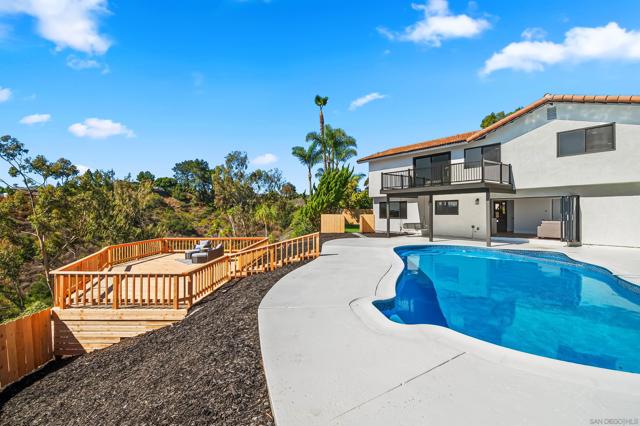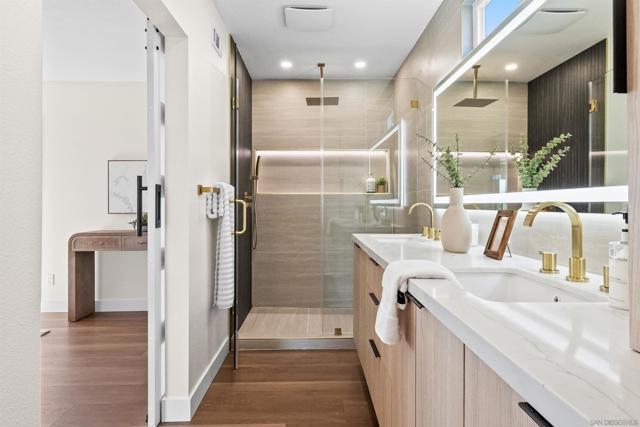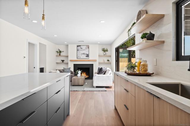 Experience modern coastal living in this fully remodeled five-bedroom, three-and-a-half-bath home in highly desirable University City. Set on a 9,100 sq. ft. lot, this residence features vaulted ceilings, abundant natural light, and a gourmet kitchen with waterfall-edge quartz counters, custom oak cabinetry, and a large island. Enjoy seamless indoor-outdoor living with 12-foot cantina doors opening to a landscaped backyard with west-facing canyon views, a refinished pool, and multiple decks—including a private deck off the primary suite. Flexible layout offers dual primary suites, designer bathrooms, and wide-plank luxury vinyl flooring throughout. Additional highlights include a three-car garage and a quiet cul-de-sac location near top schools, beaches, parks, shopping, and dining.