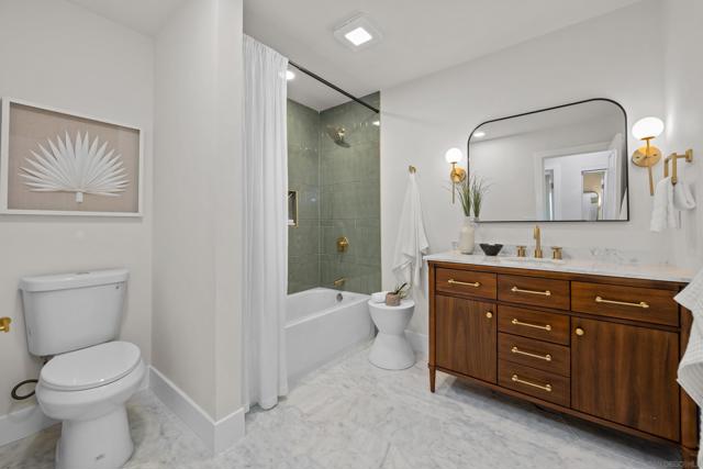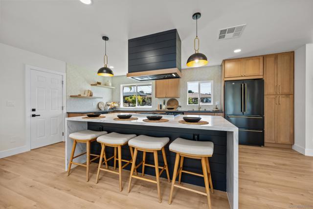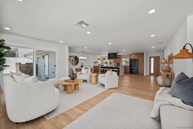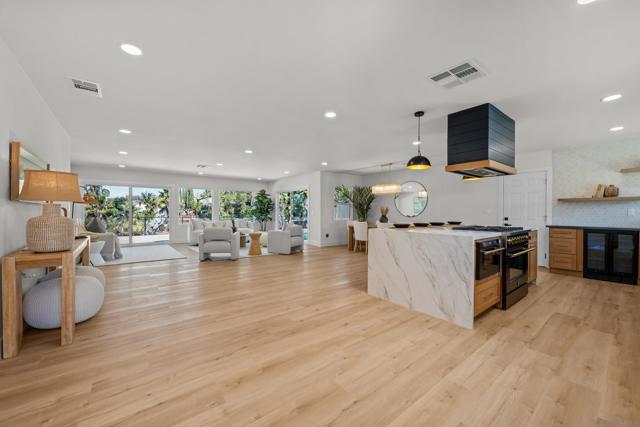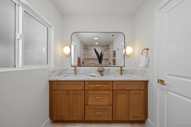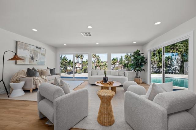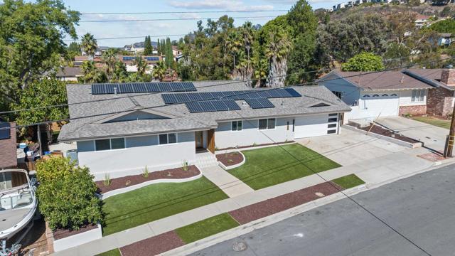 Perched above the canyon on nearly half an acre flat, usable lot, this extensively remodeled 4 bedroom, 2 bathroom POOL home delivers the perfect balance of design and quality in one of Del Cerro’s most desirable pockets. Remodeled with PERMITS from the city of San Diego, nearly every inch of this almost 2,000 sq ft home has been meticulously rebuilt with quality craftsmanship, attention to detail and high end finishes throughout. Step inside to an enormous chef’s kitchen featuring quartz waterfall counters, new appliances, custom white oak cabinetry, custom hood, tiled backsplash, designer lighting, and a spacious island that anchors the open-concept living space. The bathrooms are dressed in timeless marble tile, exuding a luxury-spa feel. Outside, the resort-style pool area has been completely redone, surrounded by brand new travertine decking and sleek cable railing that frame the sweeping canyon views. Below the pool, a flat, usable yard offers endless possibilities for play and entertaining. Additional upgrades include a new posts and pier foundation, owned solar, a new roof (2024), updated plumbing, new windows, new doors, new turf, new exterior stucco, new retaining wall with cable railing, new insulation...too many upgrades to list — no detail was overlooked. A rare, move-in-ready canyon view home that perfectly balances privacy, style, and San Diego indoor-outdoor living.