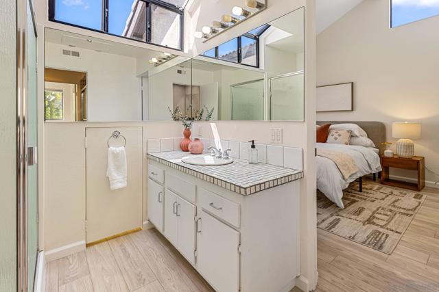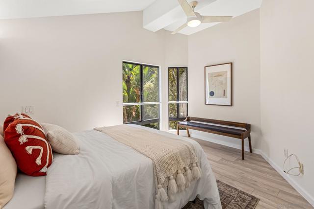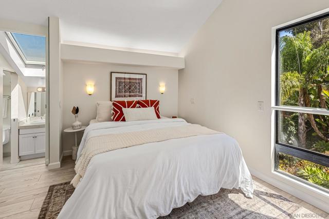 We’re ready to welcome you home! Step into the privacy and comfort of a single-family feel with the convenience of an end-unit attached home. Imagine your own spacious tropical backyard retreat—perfect for entertaining or simply unwinding in total privacy. With only one shared wall, sunlight floods the customized open floor plan, highlighting the updated flooring, fresh paint, and modern finishes throughout. This thoughtfully designed home features 3 bedrooms and 3 en suite-bathrooms upstairs, plus a guest half bath downstairs. Recent upgrades include newer appliances, a newer HVAC system, large capacity tankless water heater, and a whole-house water filtration system—giving you peace of mind and move-in ease. And when it’s time to relax or play, you’re just a short stroll from the sparkling community pool. Prime Location, Perfect Lifestyle! Nestled just steps from the USD campus and a short drive to Mission Bay; University Canyon West combines convenience with natural beauty. VA Approved.