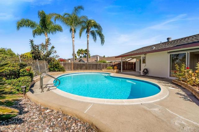 Welcome to 92120 in the Del Cerro/San Carlos community! This single-story 1,753 sq. ft. home sits on an 8,200 sq. ft. lot and offers 3 bedrooms, a pool, and owned solar in one of San Diego’s most sought-after neighborhoods. The home has been thoughtfully updated with newer AC, newer dual-pane windows and slider doors, Tex-Cote stucco (2019 with lifetime warranty), fresh interior paint and carpet (Nov 2025), and updated flooring in all bedrooms and bathrooms (2023). Inside, you’ll find a bright and functional floor plan. The updated kitchen features light cabinetry, ample storage, and beautiful mountain views overlooking the entertainer’s backyard. Both the living room and family room offer great natural light, and the primary suite, living room, and family room all include sliders that open directly to the backyard for effortless indoor-outdoor flow. Step outside to a backyard designed for fun and relaxation—complete with a sparkling pool, covered patio, grassy area, and plenty of space to gather. Close to Patrick Henry High, Lake Murray, Cowles Mountain, parks, tennis, and more, with quick freeway access to all of San Diego’s best destinations.