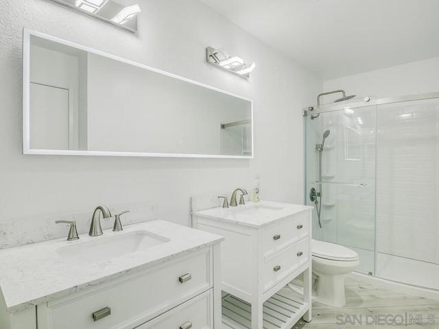Upgraded Ground-Floor Unit with Stunning Views. Set above Mission Valley in the sought-after City Scene community, this spacious 3-bedroom, 2-bath ground-level unit offers the perfect blend of style, comfort, and convenience. With 1,271 sq ft of living space and panoramic views, this home stands out for both its location and thoughtful upgrades. The unit includes a total of three parking spaces: two in a private tandem garage and one additional non-garage space with a permit/decal. Inside, you’ll find a long list of improvements designed to enhance daily living. Luxury vinyl plank flooring adds a clean, modern touch while the interior paint creates a bright and inviting feel throughout. The kitchen has been upgraded with marble countertops and a new single-bowl stainless steel sink with a built-in cutting board—great for both cooking and entertaining. The remodeled primary bathroom features dual sink vanities and a sleek new shower enclosure, offering a private retreat at the end of the day. Additional updates include a newer water heater. Step outside to your private patio to enjoy open views and breezes, or take advantage of the resort-style amenities, including a large pool, spa, and fitness center. Perfectly situated in central San Diego, this unit offers quick access to everything from Fashion Valley Mall and Snapdragon Stadium to USD, SDSU, Mesa College, downtown, beaches, hospitals, and the airport. The City Scene community features a range of amenities including a pool, spa, fitness center, and BBQ area, with water and trash conveniently included in the HOA dues.