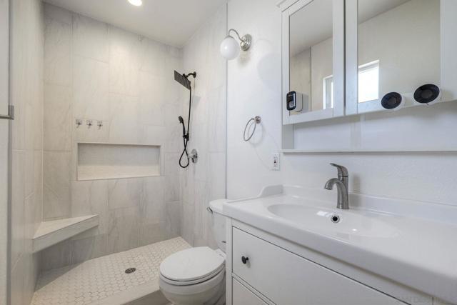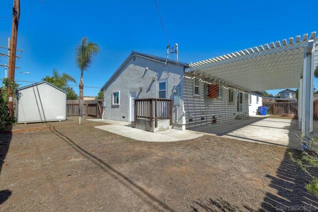 Set on a sunny corner lot, this move-in-ready 4-bedroom home combines thoughtful updates with timeless mid-century character. Inside, you’ll find freshly painted walls, ceilings, and kitchen cabinets, some new flooring, and a brand-new refrigerator—balanced by the beautiful original oak plank floors that run through much of the home. The primary suite features a fireplace and private en-suite bath, while another bedroom includes a built-in desk ideal for a home office or study. Both bathrooms have been remodeled, and the home enjoys dual-pane windows, LED lighting, central air and heat, a newer roof, and an updated kitchen with modern finishes. A dedicated laundry room with sink connects the kitchen to the attached garage for easy everyday living. Out back, a massive Alumawood pergola shades an inviting patio with outdoor TV setup for game days, gas BBQ stub-out, and space for RV parking or future outdoor enhancements. A large storage shed is included. Out front, a deck off the living room adds another outdoor gathering spot. Other upgrades include major electrical and plumbing replacements throughout, ensuring long-term peace of mind. Located just minutes from Convoy District dining, Mira Mesa College, shopping, and major freeway access, this home delivers style, function, and convenience in one of central San Diego’s most accessible neighborhoods—and no permit needed for street parking.