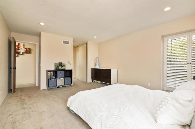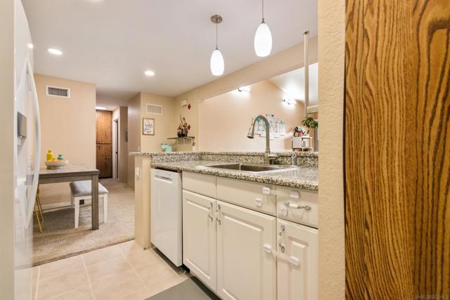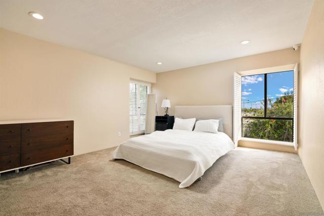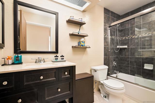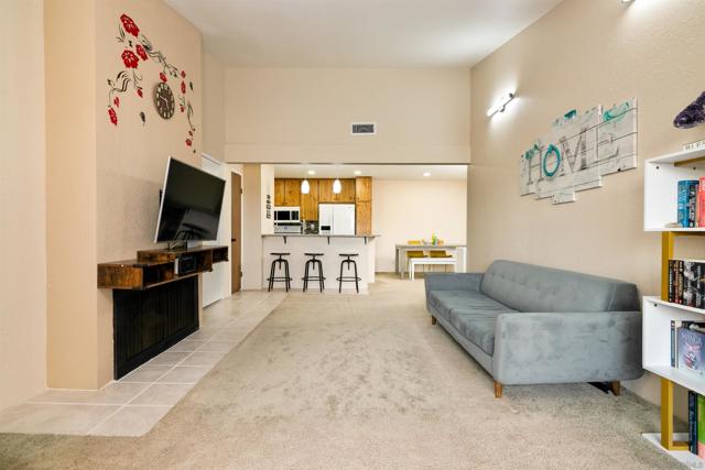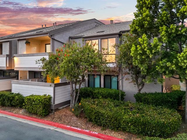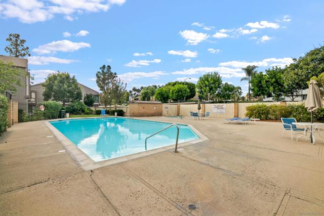 Located in the highly desirable Woodbridge Estates community in sought-after Serra Mesa. This 2-bed, 2-bath upstairs end unit features vaulted ceilings and a fireplace, along with indoor laundry and central air conditioning and private balcony with south facing views. Several upgrades include modern kitchen appliances, LED recessed lighting throughout, a new HVAC system, granite countertops, and remodeled bathrooms. This desired floor plan offers a separate dining area, outdoor storage closet, and both bedroom windows feature plantation shutters. The spacious primary bedroom includes 2 closets, including a walk-in closet. This unit comes with 2 dedicated parking spaces, including a covered carport. Woodbridge Estates is thoughtfully designed with beautifully landscaped grounds and offers several amenities, including two pools, spas, and a BBQ area. This exceptional home is conveniently located near Snapdragon Stadium, parks, schools, and shopping, with easy freeway access.