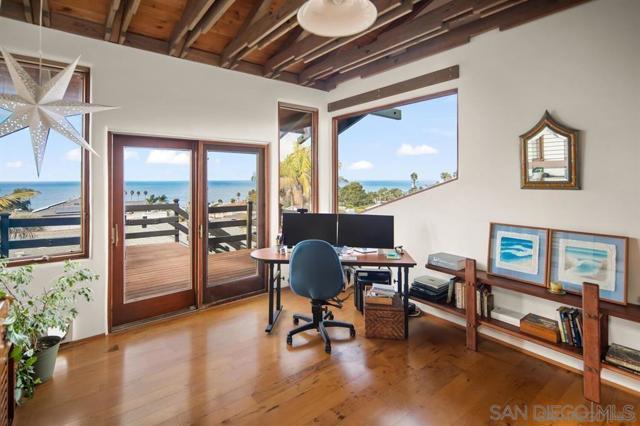 For the buyer seeking protected panoramic ocean views, a refined coastal lifestyle, and the perfect balance of craftsmanship, comfort, and connection to nature and community—this is home! And it’s the only one like it. At the crest of the hill in South Sunset Cliffs, this exceptional coastal Craftsman showcases breathtaking, protected views of the Pacific, coastline, and magical sunsets—just two blocks from the surf. Featuring 3+ bedrooms and 3 bathrooms, the home highlights dramatic open-beam ceilings, skylights, a striking fireplace, and exquisite use of brick, wood, tile, & granite.The primary suite is a private sanctuary with sweeping views that inspire from sunrise to sunset. The chef’s kitchen features a large island that opens seamlessly to the dining area, perfect for gatherings.Outdoor living shines with a stunning tiled pool, multiple private patios, a sauna, and expansive decking that define the ultimate indoor-outdoor lifestyle—ideal for entertaining or simply savoring sunsets in total privacy. Set on an oversized corner lot, the property offers ample space for additional vehicles, recreational toys, or the potential to add an ADU. Located in the highly desirable Azure Vista subdivision, this rare gem blends timeless craftsmanship, an unbeatable location, and walkability—just steps from Sunset Cliffs Natural Park, Jensen’s, Peet’s Coffee, & minutes to the bay and yacht clubs. With protected ocean views, paid solar panels, a Tesla Powerwall system, and every amenity at your doorstep, you’ll feel like you’re on vacation every day—without ever leaving the Peninsula