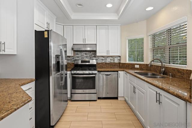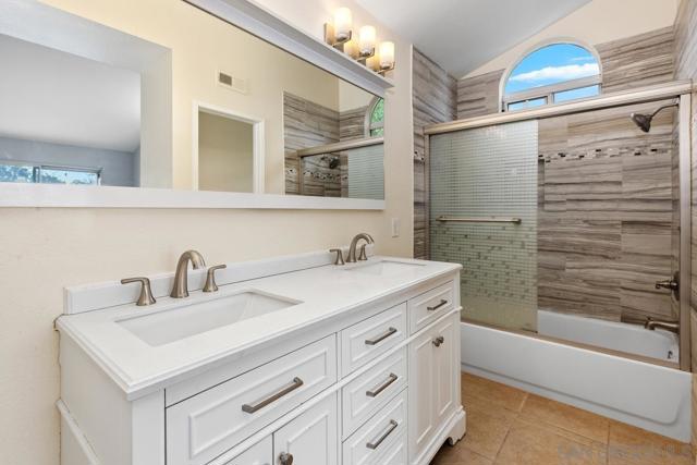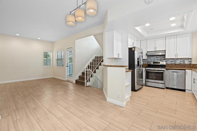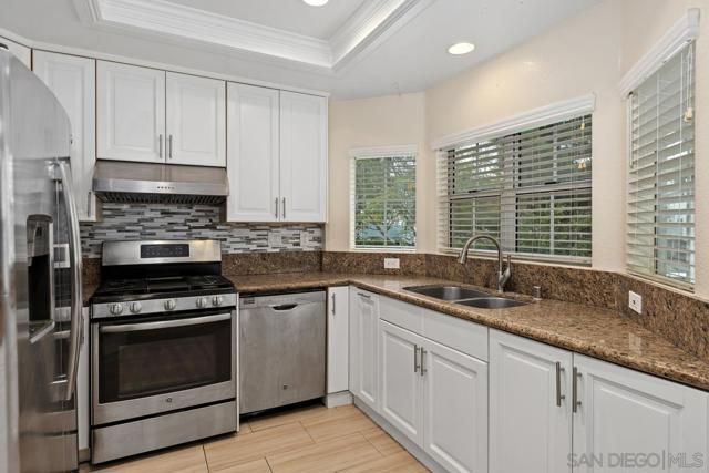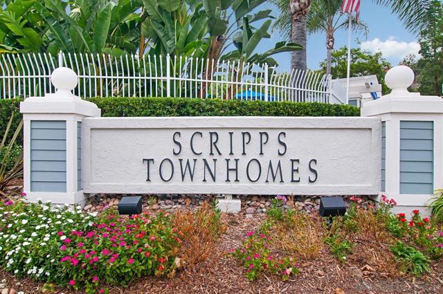 Sunny, bright, end-unit Scripps Ranch townhome with the best location in the complex. Features include upgraded cabinetry, stainless steel appliances, flooring, bathroom sinks and cabinets and more. The primary suite with private balcony and walk-in closet and a second bedroom with an en-suite bedroom are located upstairs. The third bedroom and full bathroom are downstairs. Enjoy direct-access from the large two-car garage. Re-sort style community amenities and HOA includes water and trash. Close to top-rated schools, dinning and shopping.