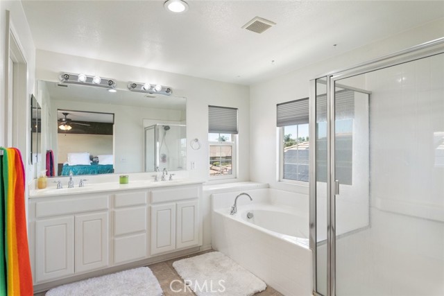 Unique 6 bedroom 4 bath home with a primary bedroom downstairs and a primary bedroom upstairs. Plus a separate casita in front of the home with 1 bedroom/living space and 1 bath. 3 car garage. Great for multi generation living situations. A dual fireplace in the wall separates the formal living room and dining room. Vaulted ceiling in formal living room. Kitchen features double ovens and granite counters. Sliding barn door to formal dining room which has a butler counter. Lots of doors to access exterior of the home. There are 2 bedrooms downstairs and 4 bedrooms upstairs. Primary bedroom upstairs has a bedroom/suite off of it. Can play music from the smart thermostats. Solar to transfer with home sale. This is a must see!