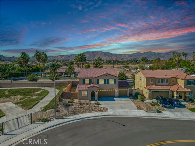 Welcome to this modern 5-Bedroom Home on a Quiet Cul-de-Sac in San Jacinto. Built in 2022, this move-in-ready home blends modern design, space, and comfort in one beautiful package. Featuring over 2,300 sq. ft. of living space, this two-story home offers 5 bedrooms and 3 full bathrooms, including a convenient downstairs bedroom perfect for guests or multi-generational living. Step inside to an open-concept layout with a spacious great room, dining area, and a large island kitchen with bar seating, granite countertops, stainless steel appliances, and a walk-in pantry. The neutral tones, white shaker cabinetry, and luxury vinyl plank flooring throughout create a clean and welcoming vibe. Upstairs, you’ll find a versatile loft space, three secondary bedrooms, a full bathroom, and a laundry room. Plus a generous primary suite with an ensuite bath and a large walk-in closet. Another highlight is the 3-car garage. Sitting on a large lot at the end of a quiet cul-de-sac, this home offers the space and privacy you’ve been looking for — all within a newer San Jacinto neighborhood close to parks, shopping, and schools.