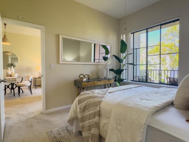 Fully remodeled top-floor corner unit in a secure, resort-style community just minutes from Downtown San Jose, SJSU, and major freeways. This home boasts one of the best locations in the complex, tucked away at the back for added privacy, with abundant natural light and scenic views of the greenbelt, pool, and walking paths. The 1-bedroom, 1-bathroom layout features soaring ceilings, a fully updated kitchen and bathroom, large windows, and convenient in-unit laundry. Enjoy a spacious interior closet along with a private storage room located just outside the unit on the balcony. Community amenities include a controlled-access building with a secured garage and mailroom, sparkling pool and spa, fully equipped gym, game room with billiards, BBQ area, event and conference rooms, and beautifully landscaped grounds with walking paths. HOA dues cover water/sewer, and trash for added convenience. This property is a fantastic opportunity for investors or owner-occupants alike. Live or invest in style, this turnkey condo offers the perfect combination of comfort, convenience, and resort-style living.