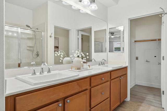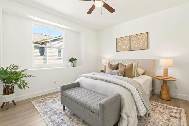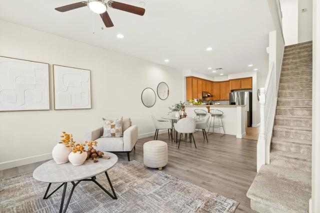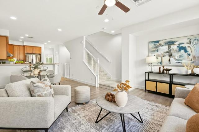 Gorgeous home in a sought-after community. This lovely 3 bed, 3 bath, 1,489 sq. ft. home features a gourmet kitchen with granite countertops, breakfast bar, SS appl, 5 burner gas range, and pantry. The floor plan includes a desirable dual suite, a lower-level bedroom for privacy. Additional highlights include elegant recessed windows, dual-pane windows, recessed lighting, LVP floors, tankless water heater, dual-zone HVAC, Nest thermostat and built-in bookcases with a desk. With approx. 9-foot ceilings, fire suppression system, spacious garage with a window could be used as a home gym. The community is family- & pet-friendly, offering Veg Garden, clubhouse, playgrounds. Conveniently located just minutes to Vinci Park, SJ Municipal Glf Course, Commodore Park, Penitencia Creek County Park, Hwy 680, Hwy 101, Google Shuttle, VTA and Berryessa BART to Google, Meta, Amazon, Apple etc. Costco, Safeway, Ranch 99, H-Mart, Target, Great Mall, and numerous Asian, American, and Mexican restaurants are in close proximity. Villa Sport Athletic Club (5 min drive) offers high-end fitness with swimming pools and courts, while Stratford Preparatory School and popular Berryessa schools are nearby! This modern home with Low HOA & No Rental Restriction is ready to welcome its next chapter!