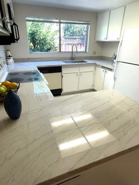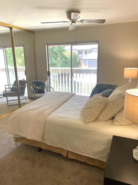 Welcome to your new home in the vibrant city of San Jose. Prime Merrivale West location, walking distance to the pool. This charming residence offers 1,056 sq ft of living space with two cozy bedrooms, including a Primary Suite/Retreat, and two full bathrooms featuring both a stall shower and a shower-tub combination. The kitchen is a true delight, equipped with electric cooktop, quartz countertops, and modern appliances including a dishwasher, exhaust fan, garbage disposal, microwave, oven range, and refrigerator. Enjoy the comfort of central forced air heating and ceiling fan cooling. The flooring is a mix of carpet, laminate, and vinyl/linoleum for versatile style and easy maintenance. Laundry is conveniently located in the garage, which also includes a washer and dryer. The property falls within the Moreland Elementary School District. Additional amenities include access to a fenced, heated, in-ground community pool for leisure and relaxation. This home offers everything you need for comfortable living in San Jose.
