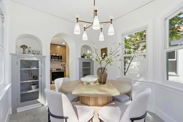 Charming Spanish Revival nestled in historic Shasta-Hanchett Park neighborhood of San Jose. This updated home combines timeless architecture with modern comforts, making it a true gem in a vibrant community. Spacious living room features an arched picture window and classic tiled fireplace. The renovated kitchen is equipped with stainless steel appliances, new cabinetry, quartz countertops, and a tiled backsplash. The dining room, with its built-ins and inviting windowed space, is perfect for family gatherings and entertaining. This home offers three spacious bedrooms, a new half bath, and a classic hall bathroom, all thoughtfully designed to provide comfort and style. The interior is bathed in natural light and offers a mix of hardwood and tile floors, complemented by new light fixtures and central heating. There is a finished oversized two-car garage comes with an attached workshop and laundry room, and a basement. Step outside to the serene back yard, perfect for relaxation and entertaining, and enhanced home curb appeal with its lush lawn and brick front porch. Located near the San Jose Municipal Rose Garden, and Alameda corridor with a delightful mix of cafes, restaurants, and shops, adding lifestyle appeal to this highly desirable, well-connected neighborhood.