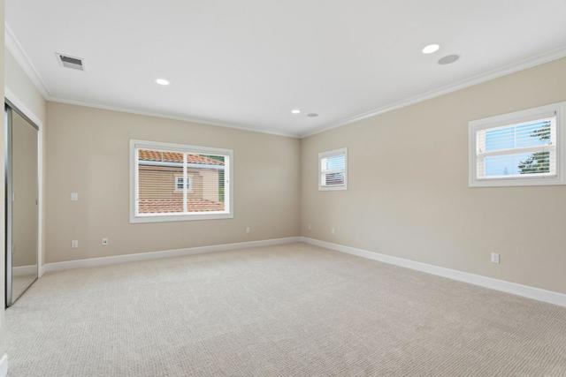 Step into this stunning 4-bedroom (all upstairs), 2.5-bath former model home where elegance meets everyday comfort. From the graceful iron staircase to the coffered ceilings and crown molding, every detail reflects thoughtful design. The open, light-filled layout invites connection, cook in your gourmet kitchen while friends gather nearby, or unwind by the cozy gas fireplace in the family room, with a central sound system amplifier, sound bar, and TV. The spacious primary suite offers a serene retreat, perfect for quiet mornings or peaceful nights. Enjoy a spacious primary ensuite bath with a luxurious soak in the bath, separate shower, and two-sink vanity! HVAC: Separate heating/cooling zones for upstairs and downstairs, 240 amp plug for car charging in the garage. PG&E plus solar panels and a backup battery in the garage. Outside, enjoy a gorgeous low-maintenance yard with old-world style pavers, blooming flowering bushes, and new trees, ideal for BBQs or evening relaxation. Located in a quiet cul-de-sac with only 11 homes. Pride of ownership shows within the community. No HOA dues, a superb Cambrian location near top schools, restaurants, shopping, and Hwy 85, this home offers the best of luxury living and community charm. Open Saturday and Sunday 1-4pm.