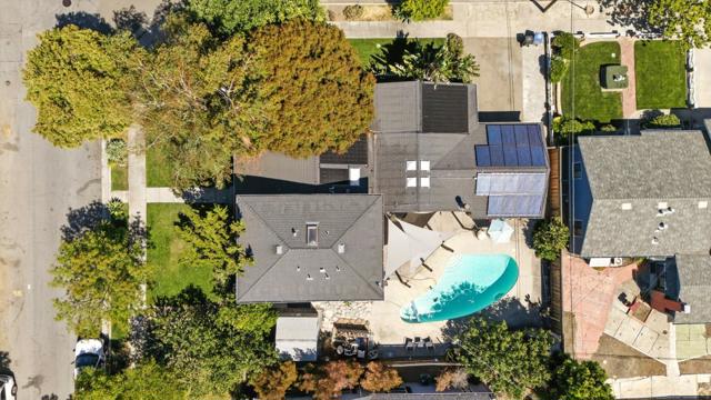 Welcome to a beautifully reimagined retreat in the coveted Rose Garden/Cory neighborhood. Where modern comfort meets the soul of California living. Set on a rare 9,000+ SF corner lot with over 2,600+ SF of thoughtfully designed space, this home was crafted for connection, relaxation, and style. Step into a sunlit open floor plan anchored by a dramatic great room with vaulted ceilings, exposed beams, skylights, and a cozy fireplace. Flowing seamlessly to a backyard that feels like your own private resort. Lounge by the shimmering pool, unwind in the jetted spa, or entertain beneath the palms as music drifts through the evening air. The chefs kitchen dazzles with quartz counters, a large island, sleek cabinetry, skylight, and premium Samsung, Bosch, and Magic Chef appliances. Designer baths, hardwood floors, solar panels, central AC, and a dedicated laundry room with storage complete the picture. Just moments from the historic Rose Garden, The Alameda, Santana Row, Valley Fair and Santa Clara. This is easy, elegant, everyday living at its finest.