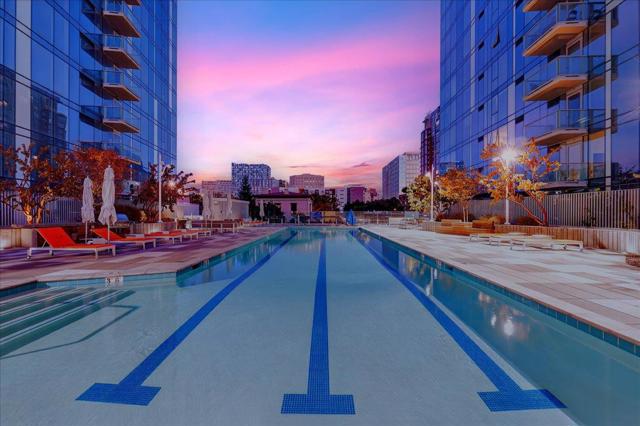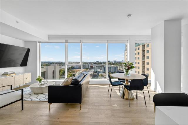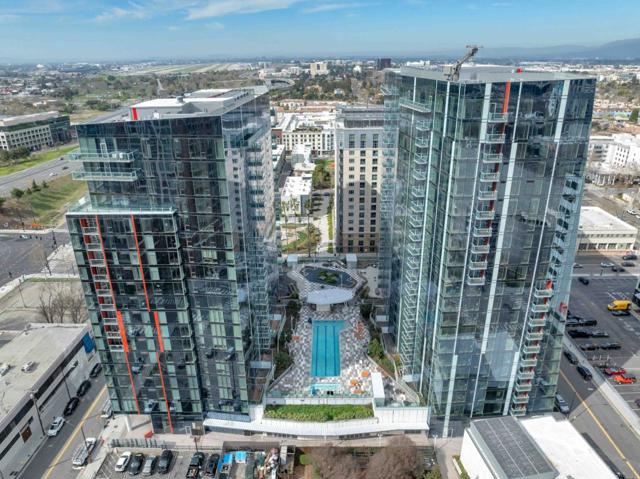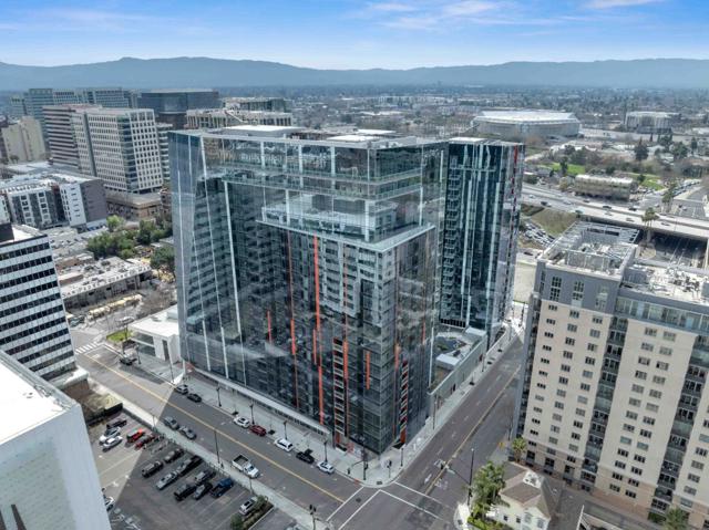 Elevate your lifestyle with this stunning 11th-floor 2-bed, 2-bath condo at the sought-after 188 West Saint James. Perched above the city, this home is filled with natural light and offers sweeping northwest views of treetops, rolling hills, and glowing sunsets. Enjoy a spacious, open-concept layout with wide-plank hardwood floors, a modern gas kitchen with quartz countertops, and premium stainless steel appliances. The primary suite features a walk-in closet and luxurious en-suite bath with dual vanities. A second bedroom and full bath offer flexibility for guests, a home office, or roommates. In-unit laundry, central A/C, and secure garage parking complete the home. Just steps to San Pedro Squares cafes, restaurants, and nightlife, and minutes to SAP Center, Adobe HQ, and SJC Airport. Commuting is easy with access to Caltrain, BART, and highways 87, 280, and 101. Enjoy resort-style amenities including a fitness center, lap pool, concierge, resident lounge, and more. Whether you're entertaining or unwinding, this home offers the perfect balance of luxury, comfort, and connectivity.
