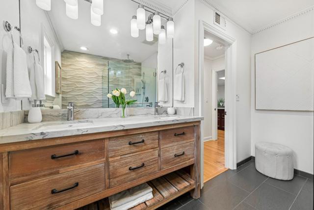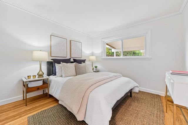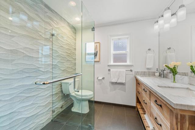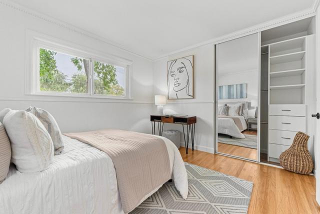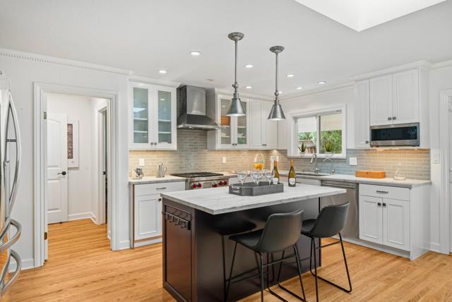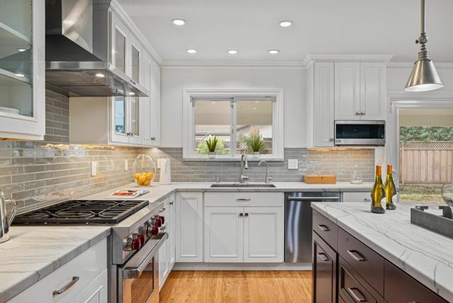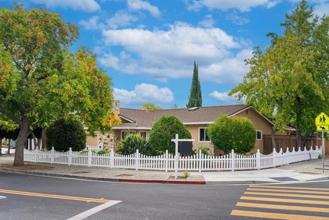 This move-in-ready home is nestled in the highly sought-after Happy Valley neighborhood of West San Jose. The spacious step-down living room features picture windows and a cozy gas fireplace. The bright, modern kitchen is a chefs delight, equipped with a top-of-the-line Wolf range, custom cabinetry, pristine white granite countertops, and a generous breakfast bar. An open dining area, illuminated by a grand skylight, flows effortlessly into the kitchen and out through sliding glass doors to a large covered patio and beautifully landscaped backyard. A private guest suite with a fully remodeled bathroom offers comfort and convenience for visitors or extended family. The luxurious primary bedroom boasts dual closets, direct access to the backyard, and an elegant en-suite bathroom with stylish tile flooring and granite countertops. Additional features include Milgard double-pane windows throughout, a whole-home water softener and filtration system, and a newer 200-amp electrical panel ready to support your EV supercharger.