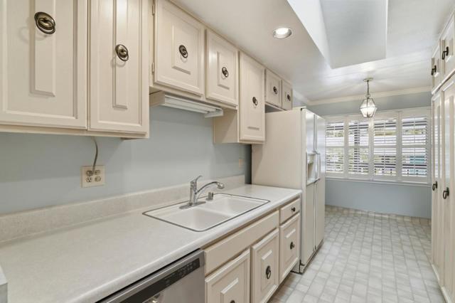 Bright and beautifully updated upper end unit in the desirable Villages community. The Eat-in kitchen features a large skylight and a spacious pantry. The oversized living and dining area is perfect for entertaining. The large primary suite offers abundant closet space and natural light, while the second bedroom is ideal for visiting guests, a hobby room or a home office. The end-unit location provides an abundance of windows in the primary bedroom and bathrooms for added light. A convenient in-unit laundry room is located on the covered back patio. The covered patio allows for neighborhood views and a peaceful place to watch the sunset. The entry patio is also coveredperfect for plants or a small garden. Enjoy the mountain and greenbelt views from the bedrooms. Experience resort-style living every day at the Villageswhere nature, recreation, community and relaxation come together in perfect harmony. The Villages offers resort-style amenities including a championship golf course, while the HOA dues include access to the clubhouse, library, tennis courts, pools, spa, bocce, walking trails, garden plots, and numerous social activities. Secure entry and security patrols, lush landscaping, and a vibrant 55+ community make this the perfect place to call home!