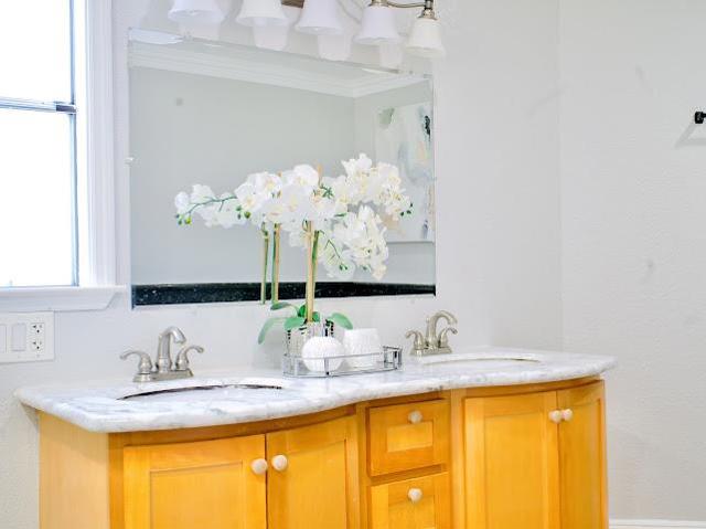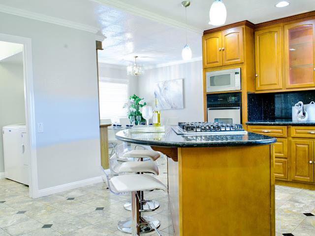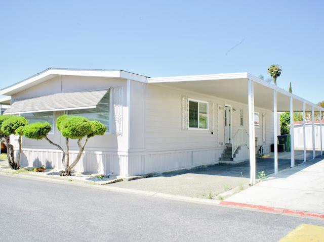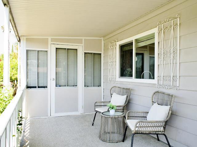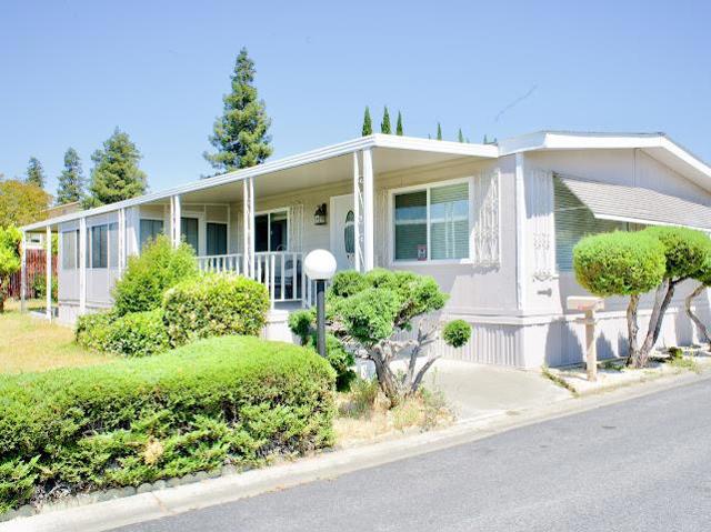 Welcome to this beautifully remodeled double-wide home in an all-age park! With 1,650 sqft, featuring 2 bedrooms plus a versatile office (could be the 3rd bedroom), this spacious residence offers both a separate living and family room. The home boasts two full bathrooms, including a luxurious master bath with a jacuzzi tub. Upgrades include recessed lighting, crown molding, copper plumbing, central AC/heating, and a mix of laminate and marble flooring. The custom kitchen and bath cabinetry are topped with elegant granite countertops and paired with stainless steel appliances. Additional highlights: new interior paint and a new water heater tank. A must-see turnkey property with modern touches throughout! Enjoy a cozy front patio and a covered balcony perfect for relaxing or hosting guests. Spacious backyard perfect for gardening!