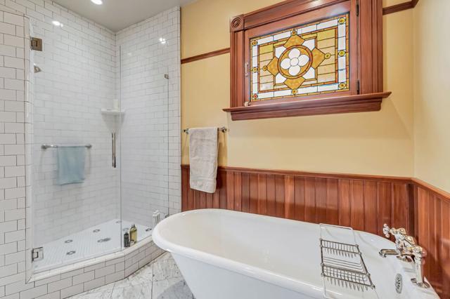 Step into timeless elegance at this majestic Victorian home. Impeccably restored, improved, upgraded, updated, and enhanced in Naglee Park! A truly one-of-a-kind property that is ready for the discerning eye of historic home enthusiasts with an overwhelming abundance of modern-day conveniences. Features include gleaming oak hardwood flooring with walnut inlays, high ceilings, restored decorative moldings and door frames, and large wood frame DP windows. Several unique custom-made stained-glass windows including amazing art pieces in the living room. Exquisite light fixtures including bronze chandelier and sconce with Murano hand-blown glass globes. Spacious kitchen upgraded but kept with period detail include butler pantry, cherry cabinets, soapstone counters, and Wolf range included with the high-end SS appliances adjacent to laundry room with LG appliances. Two remodeled full bathrooms with clawfoot tubs, spacious primary with built in stall shower and marble floors, secondary with hex tile flooring and marble counters. Heavily upgraded infrastructure! Upgraded foundation in 2012. Solar array with battery storage. Copper plumbing 2010 and wiring circa 2002, 100amp panel in 1992, new sewer piping including lateral and clean out 2022, water softener, Central AC, and so much more.