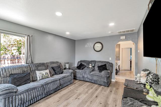 Welcome to this charming 3-bedroom, 1 and 1/2 bathroom home located in the vibrant city of San Jose. Boasting a cozy 756 square feet of living space, this residence offers a functional layout perfect for modern living. The kitchen provides ample space for meal preparation and dining, ideal for both casual and formal gatherings. Enjoy the warmth of the separate family room to relax and unwind after dinner. The home features Central AC and Heating, ensuring a cool and comfortable environment during warm months and a cozy ambiance during the winter. With flooring throughout, maintenance is a breeze, allowing for easy upkeep. The convenience of an in-home laundry setup adds to the practical appeal of this property. Situated on a lot of approximately 4,346 square feet, this property offers outdoor space for relaxation or potential landscaping projects. Fenced/gated front yard features a grass lawn and 2 healthy orange trees. Back yard features fully paved 1 year old concrete with plenty of room to furnish, BBQ, and relax. A detached 1-car garage, 3 car driveway and paved side yard ensure that your parking and storage needs are well-accommodated. Both the home and the garage have 3 year old roofs. Don't miss the opportunity to make this delightful San Jose home yours.