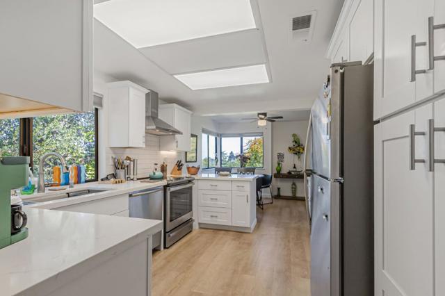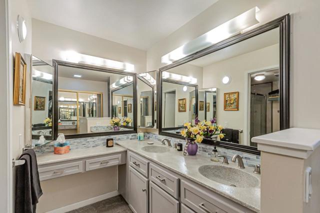 REDUCED ----End Unit Condo with Huge Sunroom for all weather use and Private front Courtyard for entertaining. *** Move in Ready with extra Den or Office *** Great home for the active working senior. *** Come home, unwind and enjoy Country Club Living. *** A 55+ Gated, Senior community, close to all freeways is The Villages Golf & Country Club, located in the Evergreen Hills of Silicon Valley. *** This home has 1649sf, 2 Bedrooms plus Den, 2 Baths, remodeled kitchen and nook with lots of cabinets and countertops, all stainless appliances, laminate floorings in all traffic areas with carpet in bedrooms and den, living room with cozy fireplace and view of hills, separate dining room plus a wonderful Sunroom surrounded by windows and sliders (ready to enjoy year-round), your ensuite bedroom opens to sunroom with private views and the separate guest bedroom has slider to front courtyard, large laundry room with washer & dryer has access to one car attached garage plus nearby carport and lots of guest parking. **** Country Club Living includes: 24/7/365 Security gate, 2 Golf courses (9 hole & 18 hole), putting and driving ranges, 4 Swimming Pools with hot tubs and showers, Tennis, Bocce & Pickleball, State of the art Fitness Center plus miles of Hiking Trails.