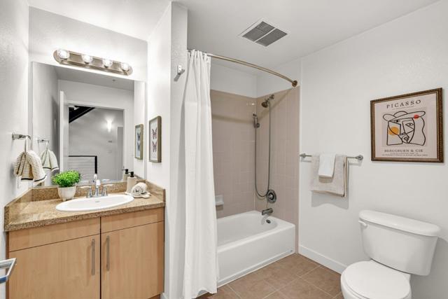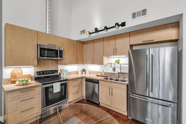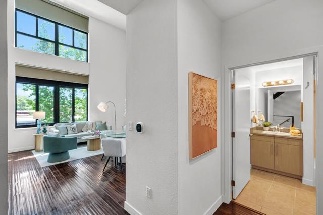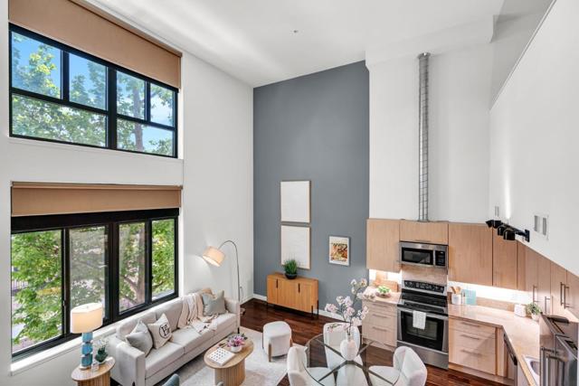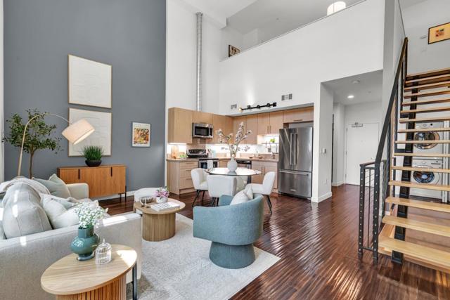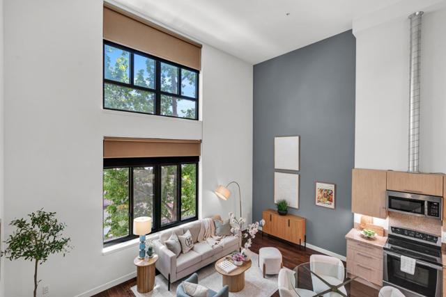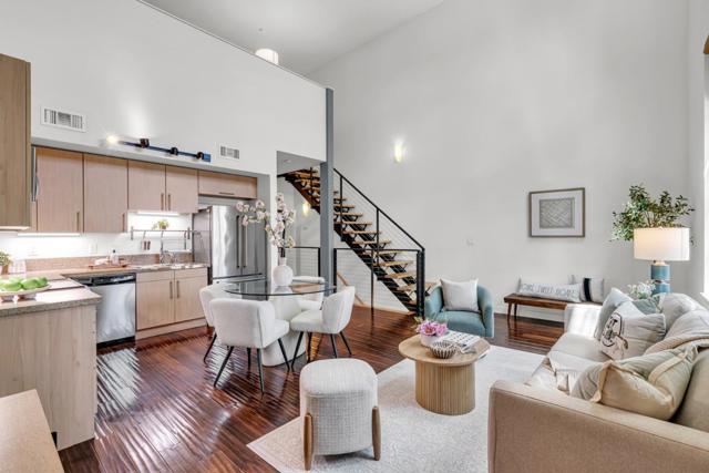 Make this stunning light filled three-level loft yours! Set in the revitalized Del Monte cannery, now a lively residential enclave, this home seamlessly combines industrial character with modern elegance. The generous main level boasts lofty ceilings, expansive windows with city and mountain views, and warm hardwood floors. The contemporary kitchen showcases quartz countertops and stainless appliances, perfect for hosting guests. On the lower level, the oversized primary ensuite with new carpeting, an elegant chaise nook, brick feature wall, a custom-designed walk-in closet, a Toto washlet, and a spacious walk-in shower invite hours of relaxation. Upstairs, a versatile loft-style second bedroom with generous closet space and energizing city views completes the layout. Enjoy two secure tandem parking spots and exceptional amenities: a 24-hour fitness center, yoga room, resident lounge, BBQ patio, bike repair station, billiards room, and more. The serene courtyard is adorned with bamboo gardens, cozy fire pits, a secured enclosed dog run, and chic outdoor seating. Ideally situated next to Cahill Park and mere steps from Caltrain, VTA Light Rail, Whole Foods, the SAP Center, and the dynamic dining and entertainment of downtown San Jose.