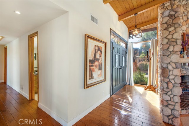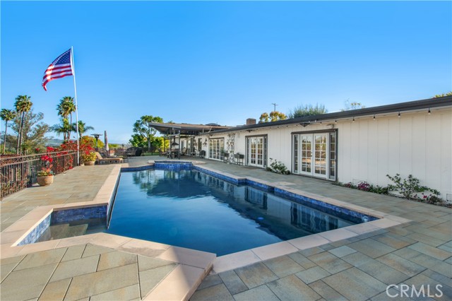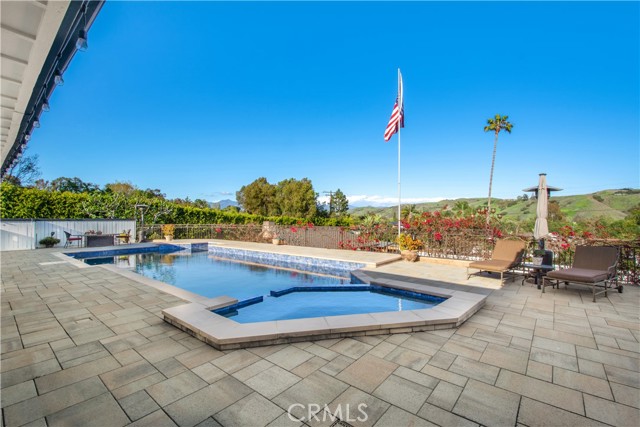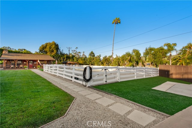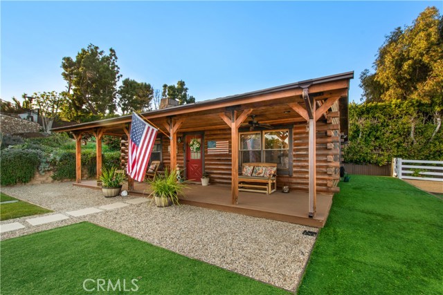 Welcome home to your very own mini-ranch in the beautiful, private equestrian neighborhood of Spotted Bull. This custom built, fully gated property boasts the best elevation, views and lot utility in the neighborhood. Situated on 1 acre and fully fenced with custom entrance, exit and pedestrian gates, the expansive grounds invite you in featuring many varieties of native flowering plants, fruit trees and expansive lawn areas. The single level home opens to vaulted open beam ceilings, walls of windows, a custom river stone fireplace with limestone mantel, hardwood flooring and a large family kitchen to host multiple gatherings in style. The spacious family room with built-in bookcases, cabinets and bench seat is a great place to gather and relax, including a see-through fireplace connecting the family room with the kitchen. The large backyard includes an oversized swimming pool, spa, firepit, panoramic views of the hills and plenty of room to host large parties or just relax and enjoy the scenery. The lower portion of the property has an enchanting cedar log cabin approximately 780 sf. featuring 2 Bedrooms and 1 bathroom, an inviting front and rear covered porch, detached office and storage space, raised garden beds, firepit and fenced arena with 2 gated entrances and RV access. At the end of the walkway you will find the “bunkhouseâ€, a former converted barn, offering more office and storage space and a great place for the teens to hang out. This property is perfect for multi-generational needs, with potential for SB-9 lot splits and numerous development opportunities. This one of a kind property is located near award winning schools, multiple scenic hiking and riding trails, charming downtown San Juan Capistrano with popular shops, restaurants, the Mission and Los Rios Historic District with easy access to Doheny Beach, Dana Point Harbor and all that southern California has to offer.
